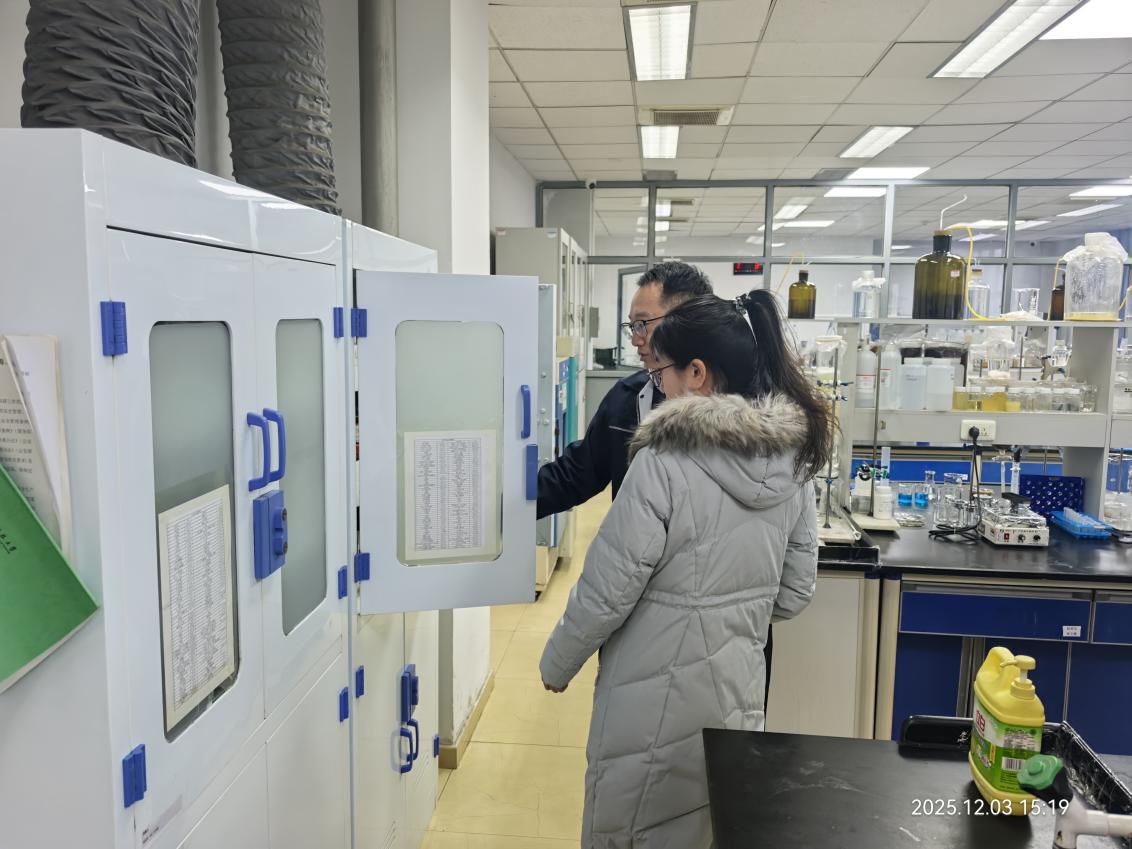专家组深入相关实验室、危化品储存场所等重点区域,通过现场查看、台账查阅、人员交流等方式,对我校危化品的采购、储存、使用、处置等全链条各环节进行了细致检查,并就危化品管理制度、责任落实、风险管控及应急准备等情况进行了系统评估。