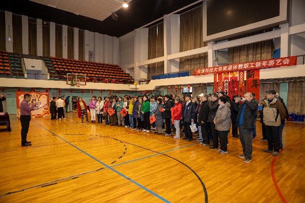岁末将至,新元肇启。为丰富我校广大离退休教职工的精神文化生活,营造温馨和谐、欢乐祥和的新年节日氛围,让老同志们在互动参与中感受浓厚的节日喜悦与集体温暖,2025年12月31日上午,我校于河西校区体育馆举办以“温情暖冬日,欢乐迎新年”为主题的2026年离退休教职工新年游艺会。