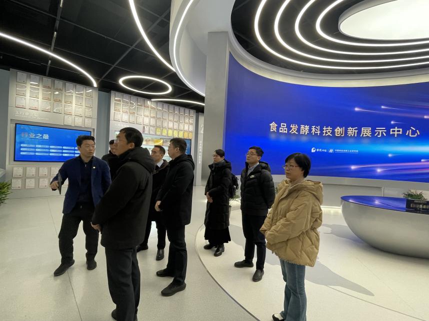 罗学刚一行首先参观了中国食品院成果展示交流中心,系统了解了中国食品发酵工业研究院在食品发酵等领域的重要科研成果与产业化进展。随后依次走访了功能主食创制与慢病营养干预北京市重点实验室、北京市蛋白功能肽工程技术研究中心、国家酒类品质与安全国际联合研究中心等成果展示中心,详细了解了中国食品发酵工业研究院各中心、部门的科研成果、技术装备及研发产品等。