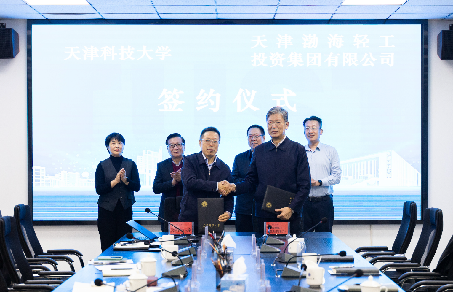 张世新对天津科技大学近年来的发展成就给予充分肯定。他指出,渤轻集团紧密围绕轻工先进制造、老字号品牌运营及轻工资产经营管理等核心主业持续深耕,创造了质美价优的轻工产品消费供给。产业升级、技术赋能是渤轻集团的发展方向,双方将以此次合作为契机,深化在合成生物、食品发酵、化工材料等各方面的深度对接,为轻工行业发展和产业升级提供校企合作新样本。