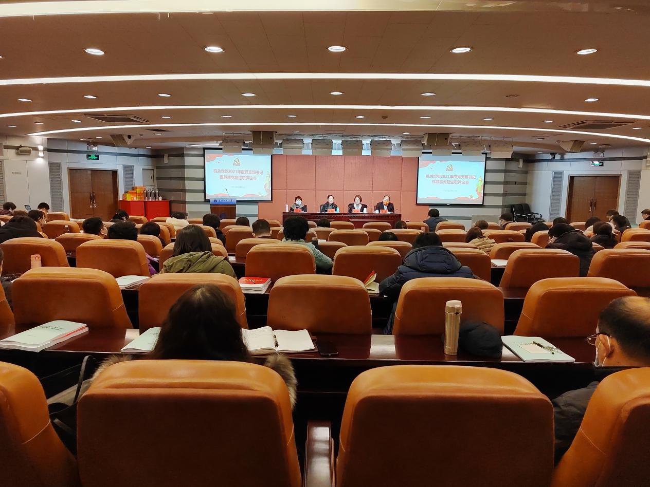 为考评党支部书记落实党建工作责任情况,提升机关党建工作水平,2月25日下午天津科技大学机关党委在河西校区C区报告厅召开2021年度党支部书记抓党建述职评议会,校党委副书记冯翠玲出席会议并讲话。化工学院纪委书记张艳秋作大会督导并点评,会议由机关党委书记缠菁主持。各基层党委(党总支)代表及机关党委委员、纪委委员、党支部书记、党员代表近百人参加会议。