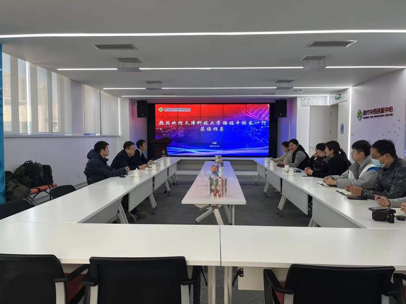 12月19日,天津科技大学党委副书记、校长路福平率队赴天津现代中药创新中心就推动校企战略合作进行座谈交流。创新中心董事长宋新波、总经理王苹及各部门经理出席活动。学校生物工程学院及食品科学与工程学院相关教师参加。