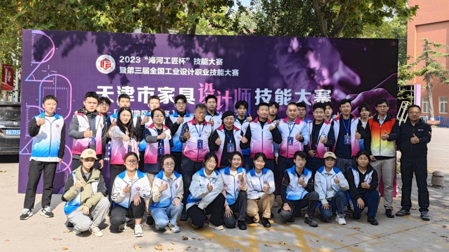 2023“海河工匠杯”技能大赛—天津市家具设计师技能大赛暨第三届全国工业设计职业技能大赛天津地区选拔赛10月21日至23日在天津科技大学举行。此次大赛为市级一类竞赛,由天津市人力资源和社会保障局、天津市总工会、天津市教育委员会共同主办,由我校与天津市家具行业协会、天津市劳动保障技师学院联合承办。大赛得到天津哏儿都新媒体科技有限公司、中国广电天津公司品牌运营中心、北京智匠文化咨询有限公司、图斯特工具系统技术(上海)有限公司、58同城天津分公司等单位的支持。天津地区18个单位派出50余名选手、裁判报名参赛。