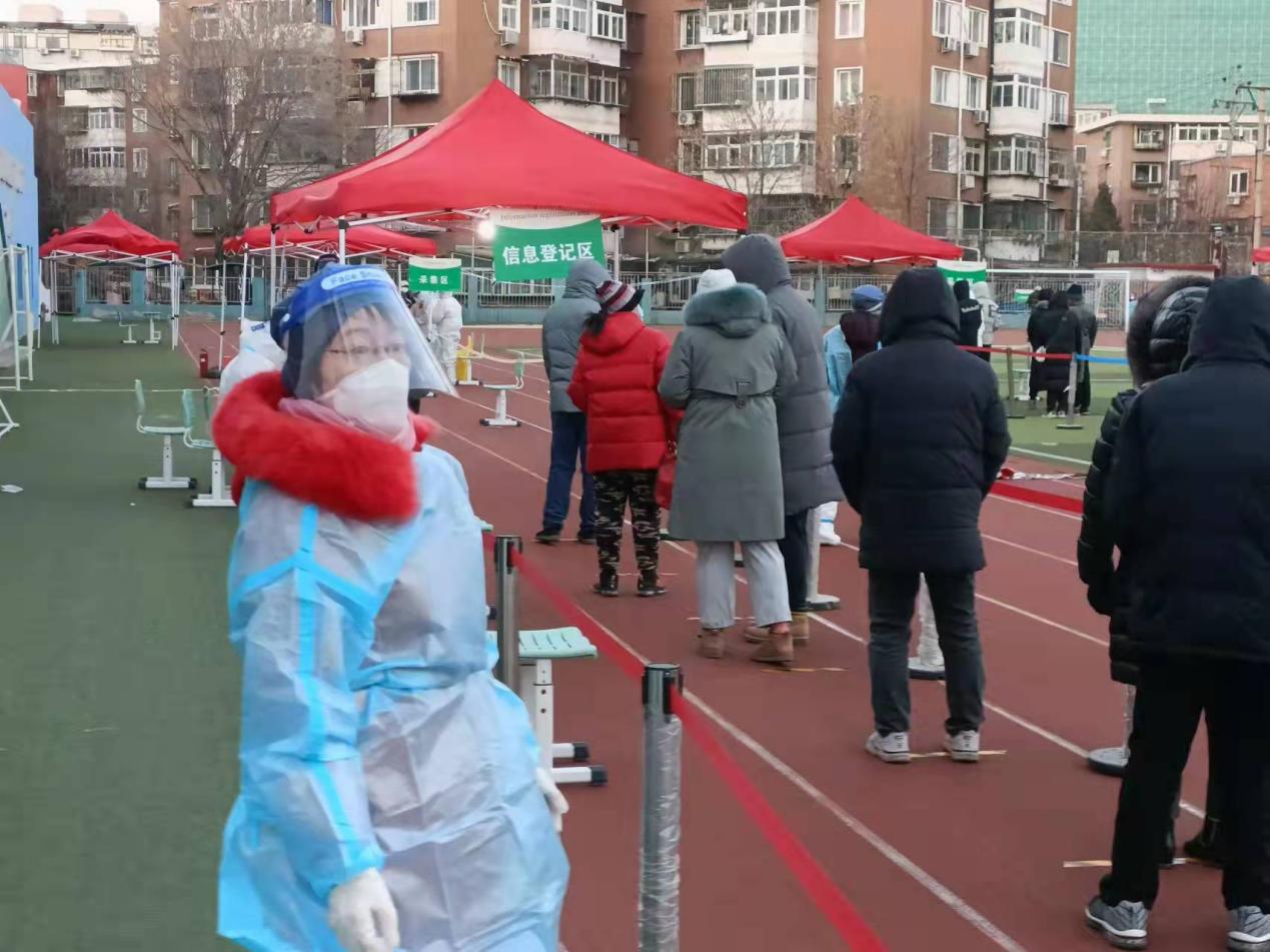 疫情当前,匹夫有责!腊月寒冬,助力宜禾社区二筛。12日清晨,在生态城宜禾社区相关工作人员的周密安排下,为了能让核酸检测更加有序,居民排队时间更短,一大早,外国语学院英语系教师张玮提前赶到集合地点,与医护人员和志愿者们抓紧做好第二轮筛查的准备工作。她穿着厚厚的防护服跑前跑后穿梭在核酸检测的队伍中维护秩序,耐心地验证居民健康码,不厌其烦地提醒大家提前准备好核酸检测二维码。这一站就是8个小时,她坚持到了最后,顺利完成了任务。张玮表示,作为党员教师,在这次突如其来的疫情阻击战中,能够服务社区,帮助他人,奉献社会,感到了发自内心的幸福。“在腊月隆冬里,万众一心,齐心协力,共同抗疫的那股暖流让我坚信“给予就是收获”的人生信条,为天津抗击疫情做点力所能及的小事,让点滴小事汇聚成战胜疫情的无限力量!天津,加油!”
