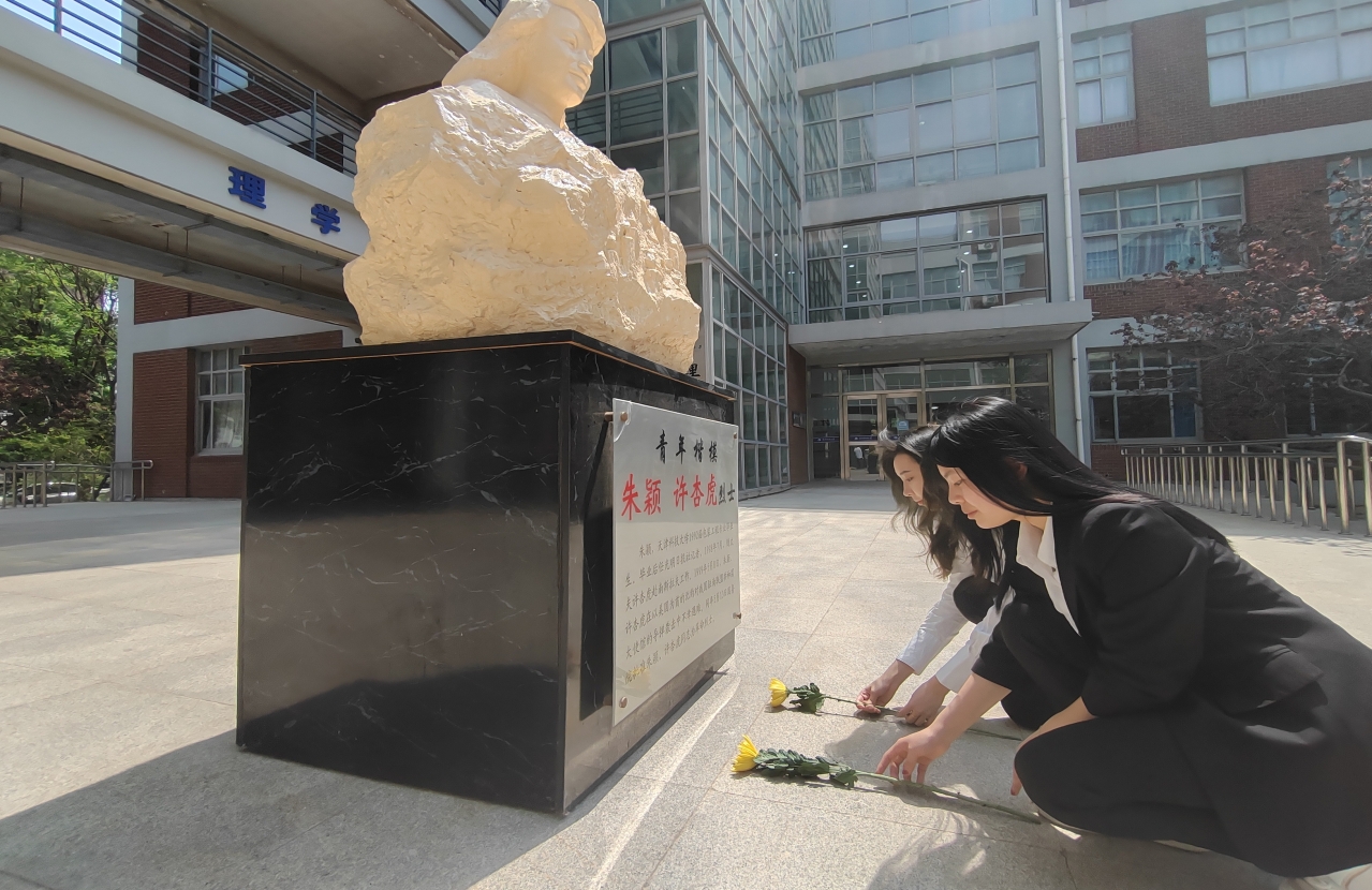 1999年5月8日凌晨,以美国为首的北约对中国驻南使馆进行导弹袭击,朱颖、许杏虎、邵云环不幸牺牲。2023年5月8日,在朱颖烈士逝世二十四周年的纪念日,天津科技大学轻工科学与工程学院师生在朱颖、许杏虎烈士雕像前举行了"传承朱颖精神 厚植爱国情怀"主题教育活动,一同缅怀先烈,寄托无限哀思。