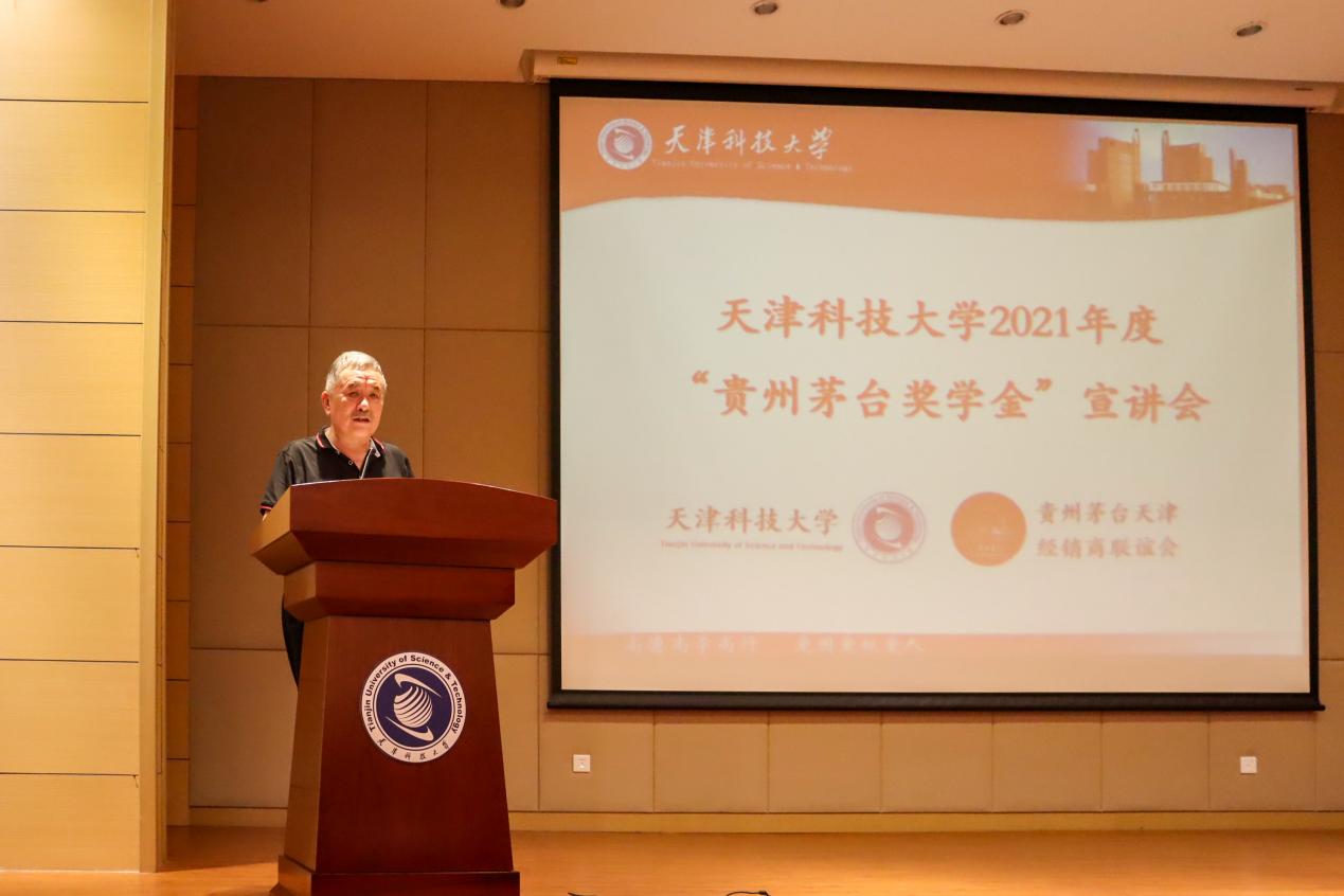 6月17日,天津科技大学2021年度“贵州茅台奖学金”宣讲会在滨海中校区逸夫楼报告厅举行。我校党委副书记、校长路福平,贵州茅台酒销售有限公司天津省区负责人胡秋翌,贵州茅台天津经销商联谊会会长宋彪,贵州茅台天津经销商联谊会副会长张鹏超、秘书长李向前、监事会主席肖宏出席宣讲会。我校教育发展基金会、校友办、生物工程学院负责同志,教师代表,茅台企业相关工作人员和各学院学生代表参加会议。