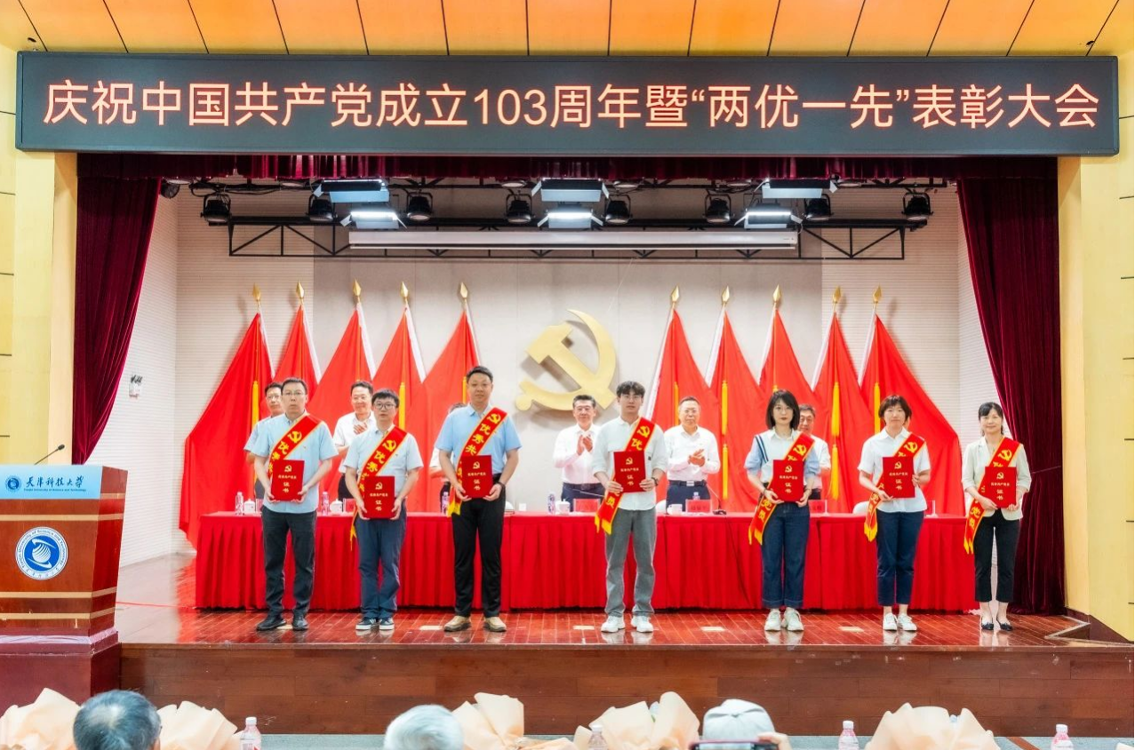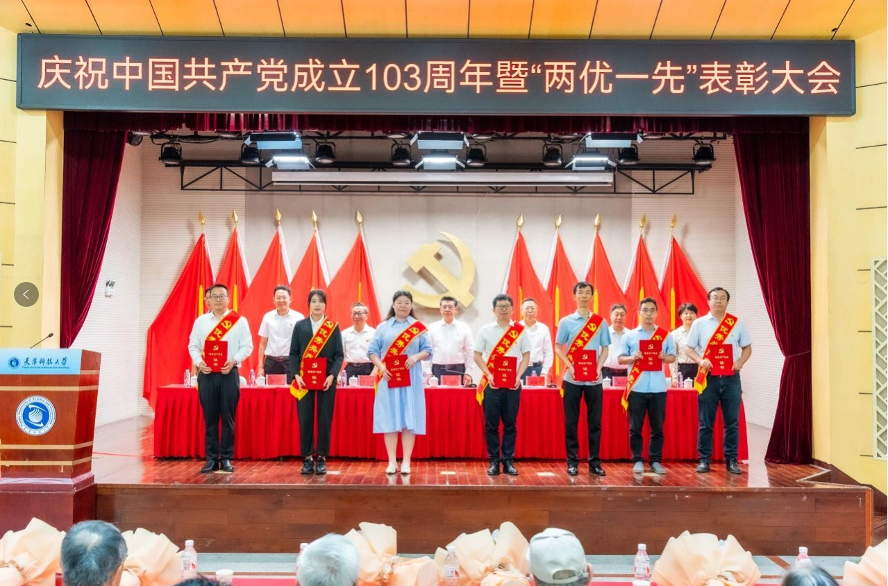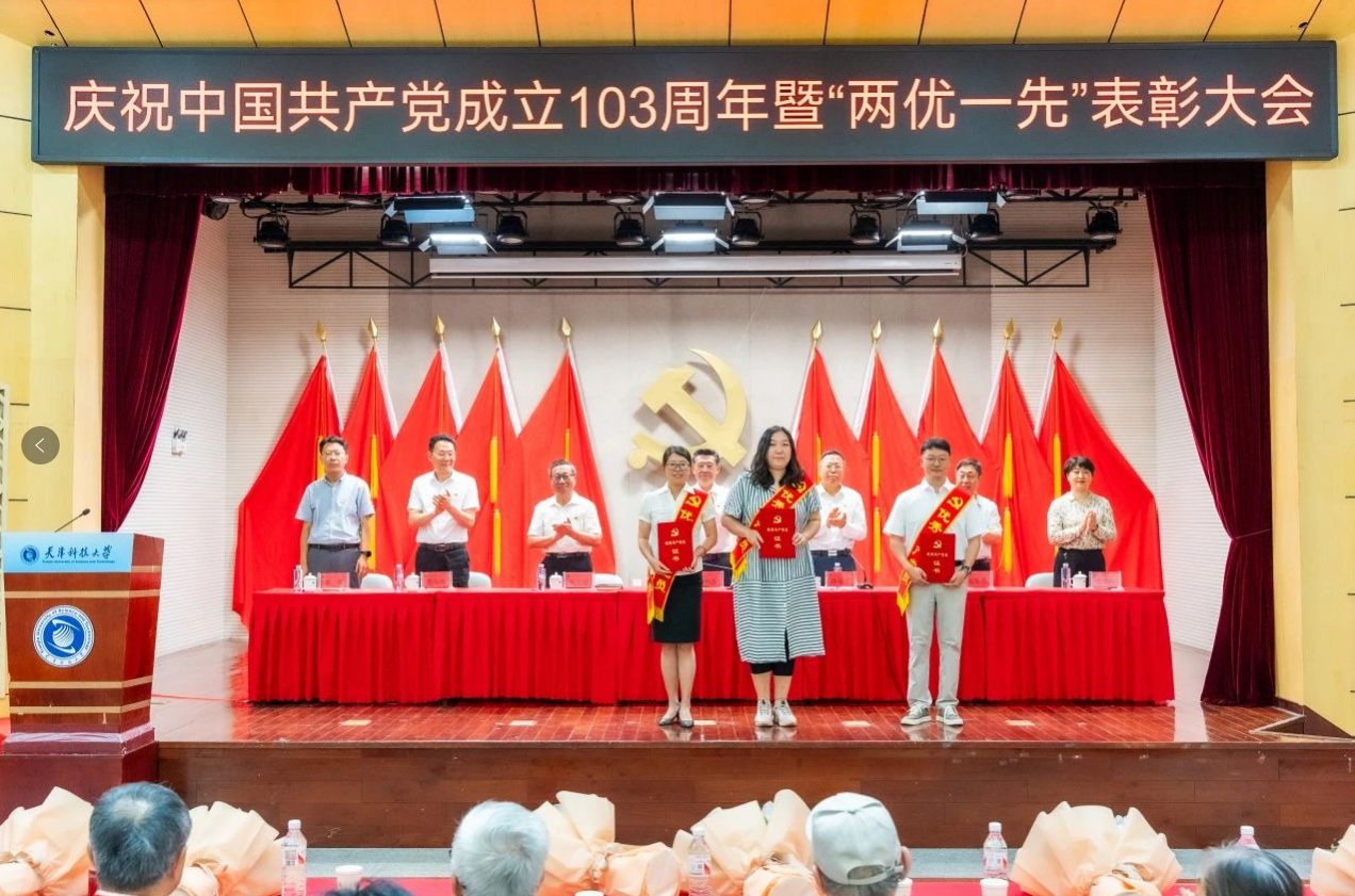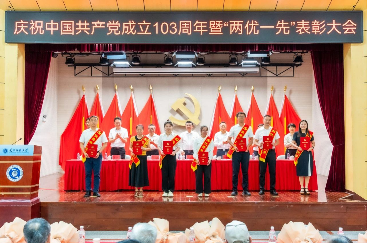 7月1日,我校在河西校区大学生活动中心多功能厅隆重召开庆祝中国共产党成立103周年暨“两优一先”表彰大会,校党委书记白海力,校党委副书记、校长路福平,校党委副书记安玉健,校党委常委、副校长高发明出席大会。会议由路福平主持。