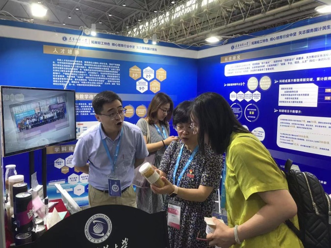 我校在大会特设的展区以“拓展轻工特色 精心培育行业中坚,矢志服务国计民生”为主题,全面展示了近年来研究生培养所取得的立德树人成就、改革创新发展成效、优势特色育人项目、优秀教育教学成果。生物工程学院、食品科学与工程学院、化工与材料学院展出的科研成果、学生作品等实物,吸引了众多青年学子、研究生培养单位、用人单位、教育服务保障机构等参观学习,取得了良好的反响。