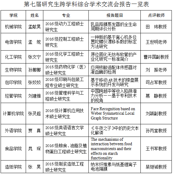6月6日下午,我校第七届研究生跨学科综合学术交流会在河西校区主楼C区报告厅举行。党委研工部和相关学院主管领导参加活动,与应邀为主讲人点评的导师以及各学院研究生代表一起,感受主讲人展示的科研之美与语言之美。