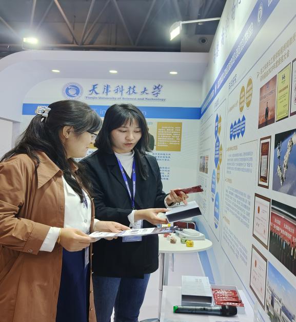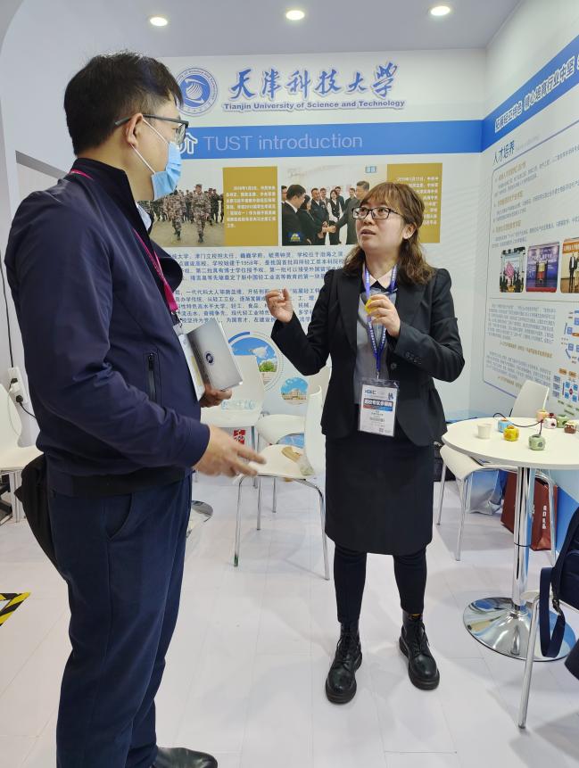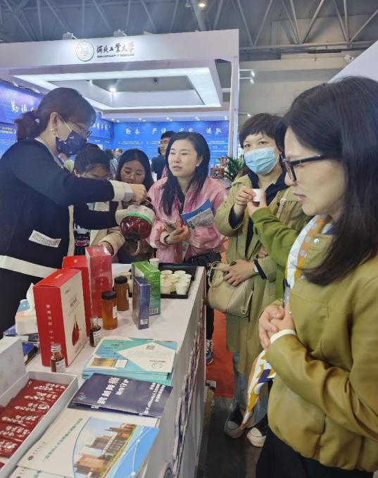 在我校展位上,精酿啤酒、枸杞原浆、壳糖平、生物水凝胶等一系列轻工发酵、生物医药产品,受到来自教育界、企业界专家学者的高度关注,学校依托国家级重点学科、国家级一流专业打造的生物医药现代产业学院也获得现场各界人士的广泛好评。