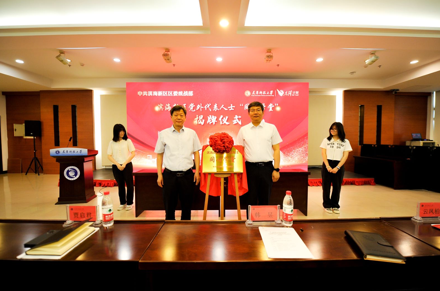 签约仪式后,韩昱、贾启君共同为“滨城同心学堂”揭牌。揭牌仪式由滨海新区党派工作处刘慧琴主持。揭牌仪式后,韩昱与滨海青商会成员前往天津科技大学科技园进行参观交流。
