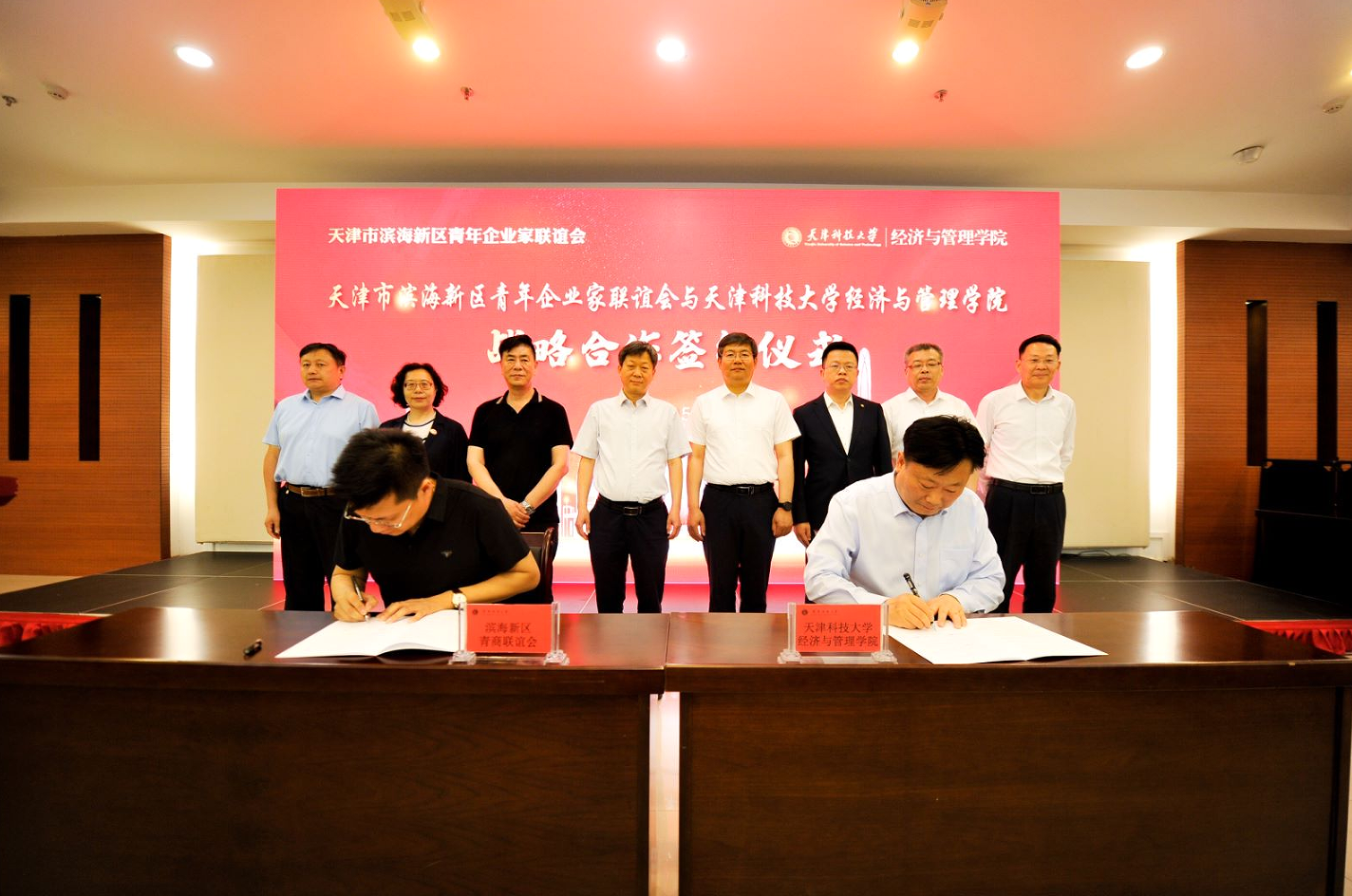 天津市滨海新区统战部有关处室负责同志、滨海新区司法局相关负责同志、滨海新区青商会成员、天津科技大学统战部、经济与管理学院、文法学院相关负责同志,师生代表等百余人参加签约仪式。