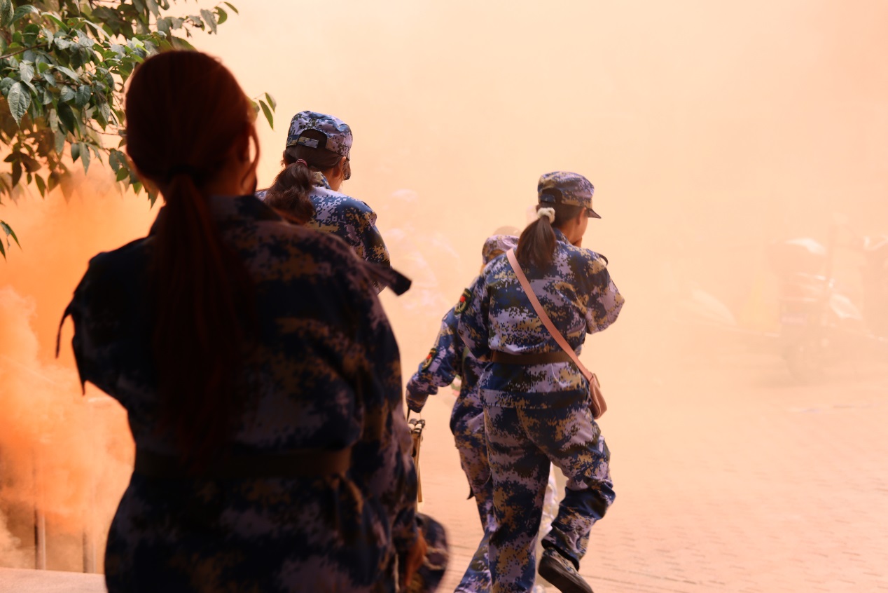 “急促刺耳的防空警报,迅速有序的疏散”,为强化国家安全意识和防空应急准备意识,熟悉防空警报信号,提高学生应急逃生技能,学校在两校区开展了应急疏散演练。当浓烟渐渐蔓延、警报声响起时,同学们立即用湿毛巾捂住口鼻,并在老师的指挥下开始有序、快速地向外撤离。各学院组织学生迅速有序撤离至指定位置后清点人数并开展安全教育,提高了同学们应对突发事件的能力,教育引导同学们树立了“珍视生命,防范第一”的意识,同时也让同学们在演习中实现了自我教育。