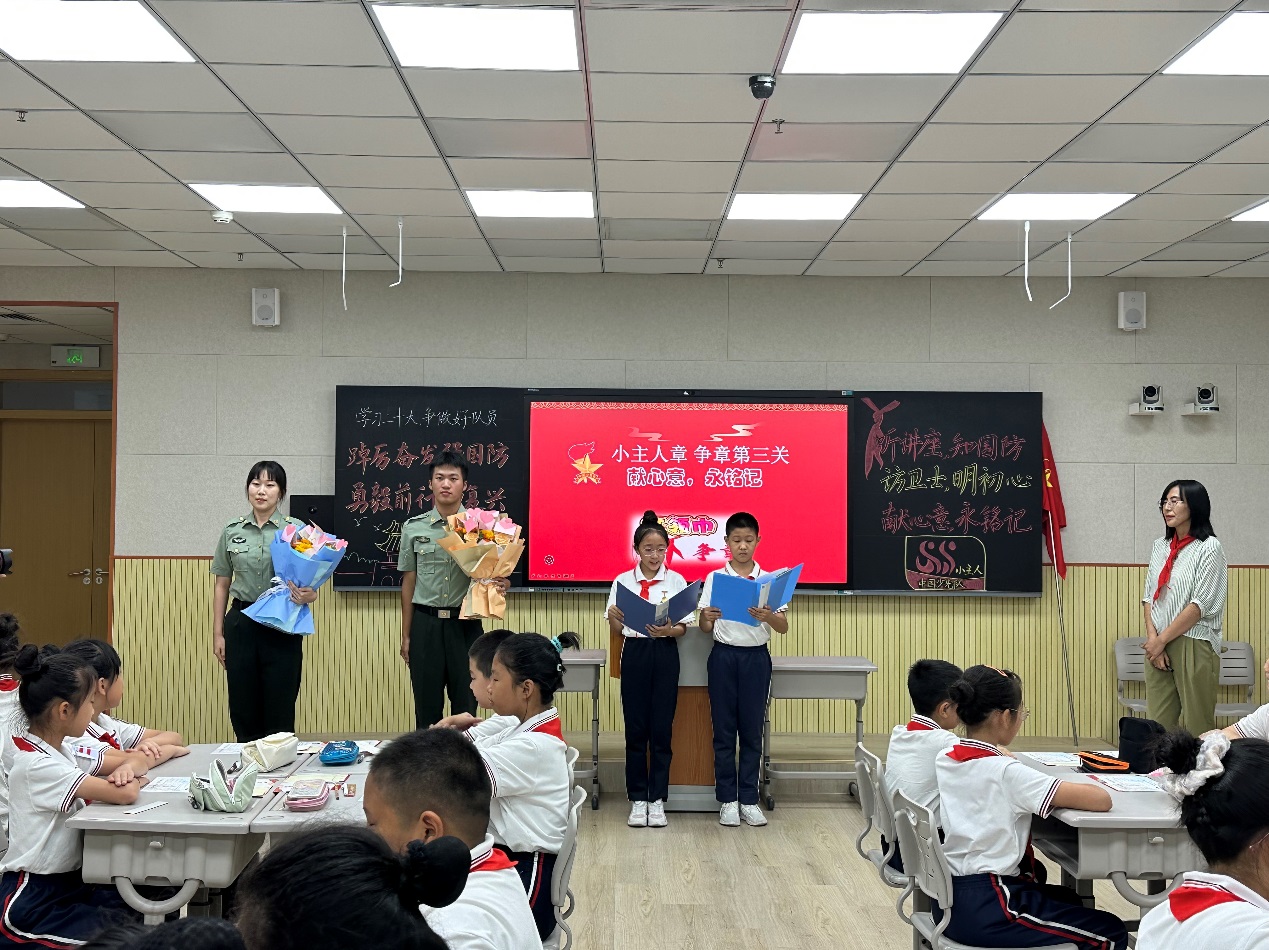“当兵后悔两年,不当兵后悔一辈子,很庆幸青春中有着这一抹迷彩的颜色”。学校组织退役大学生赴天津师范大学滨海附属学校开展大中小思政一体化国防教育活动,采用实时直播的技术手段覆盖全校3000余名师生。我校退役大学生史明昊结合自己的参军经历向同学们介绍了“一个兵”的故事,从入伍初心讲到献身国防,中间的苦与累都是人生中最重要的笔画。退役大学生陈洋向同学们讲解了国防的含义、国防力量的组成、我国列装主要武器装备,使同学们对国防知识有了深入了解,并深切体会到国防在国家生存和发展中的重要保障作用,激发了同学们的爱国热情,提高了同学们在日常生活中的国防意识。活动结束后,同学们向两位退役大学生赠送了鲜花与贺卡表达敬意,并纷纷表示,内心对军队和军人更加崇敬,也认识体会到了只有强大的国防,才有强大的祖国,作为祖国的接班人,要努力学习,强健体魄,长大后为国防建设贡献青春力量。