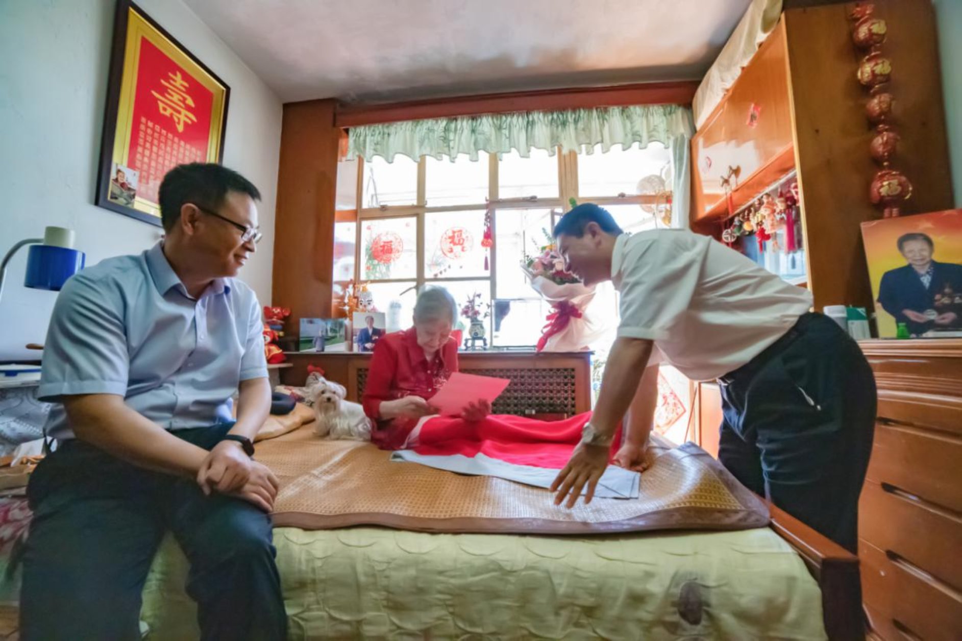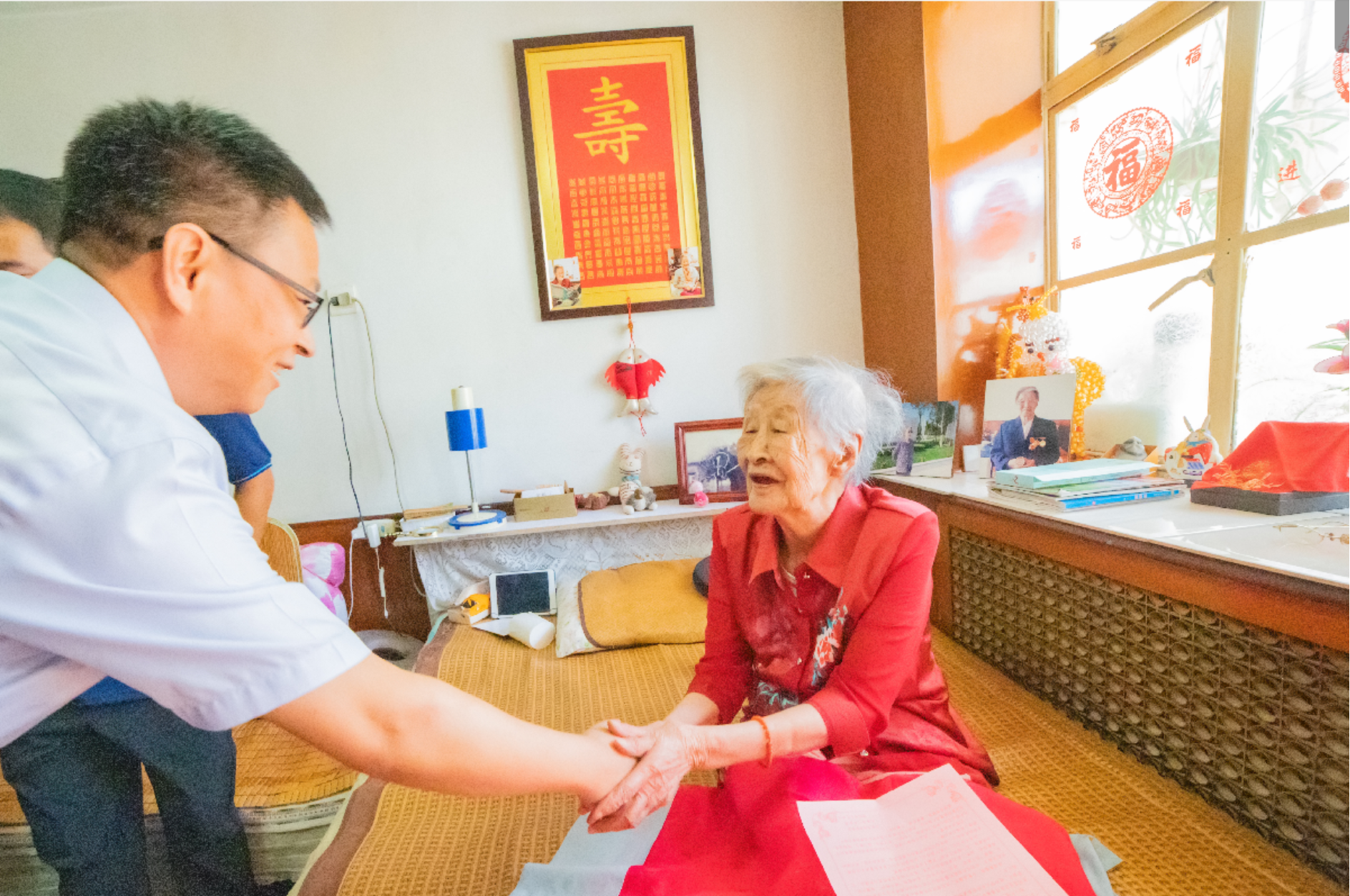 夏静波副书记认真倾听老人讲述自己的抗战经历。他说,孙芝芳老人为国家和人民作出了突出贡献。我们能生活在这样好的时代,是她们用鲜血和生命换来的,要用老一代革命家的先进事迹,教育、引导青年学生立志成才,报效祖国。今天一同前来的退役大学生代表带着对抗日老战士的敬仰,深切感受到了曾为军人的自豪,身为时代青年传承红色基因、肩负复兴伟业的责任感和使命感。夏静波副书记详细了解了老人的生活情况和健康状况,祝愿老人健康长寿、生活幸福。并叮嘱学校相关部门,要一如既往地关心抗战老同志,努力为他们创造更好的生活条件,让抗战老兵们安享晚年。
