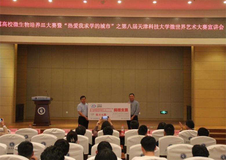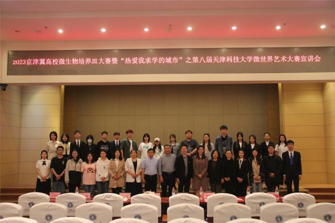 5月10日,2023年京津冀高校微生物培养皿大赛暨“热爱我求学的城市”之第八届天津科技大学微世界艺术大赛宣讲会在滨海中校区逸夫楼报告厅举行。丹娜(天津)生物科技股份有限公司副总经理盛长忠、副总经理王贺、公共事务部经理王红玉,校团委及生物工程学院相关负责同志,获奖学生和各学院学生代表一同参加会议,河北工业大学、北京工商大学学生线上参加会议。