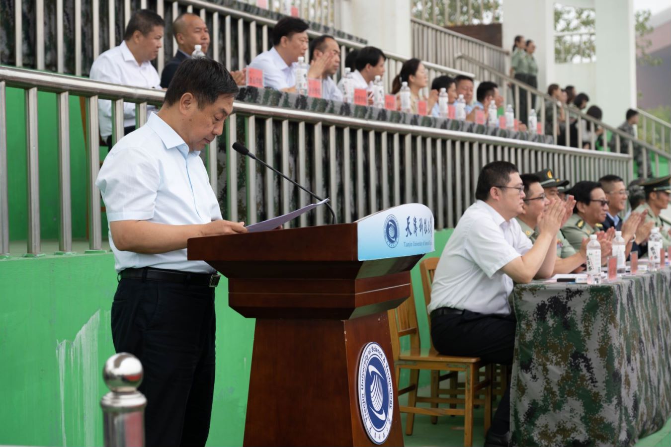 9月27日,天津科技大学2023级学生军训成果汇报暨表彰大会在滨海校区和河西校区举行。天津警备区学生军训工作办公室主任辛维刚,校党委书记韩金玉,校党委副书记安玉健,校党委常委、副校长高发明,汉沽区人民武装部部长崔锡昌,武警天津总队执勤第三支队副参谋长王顺文,武警天津总队执勤第三支队机动第二大队大队长贾石磊出席大会。校党委办公室、宣传部、学工部、人民武装部、安全工作部、教务处、后勤管理处、团委以及各学院负责同志参加大会。