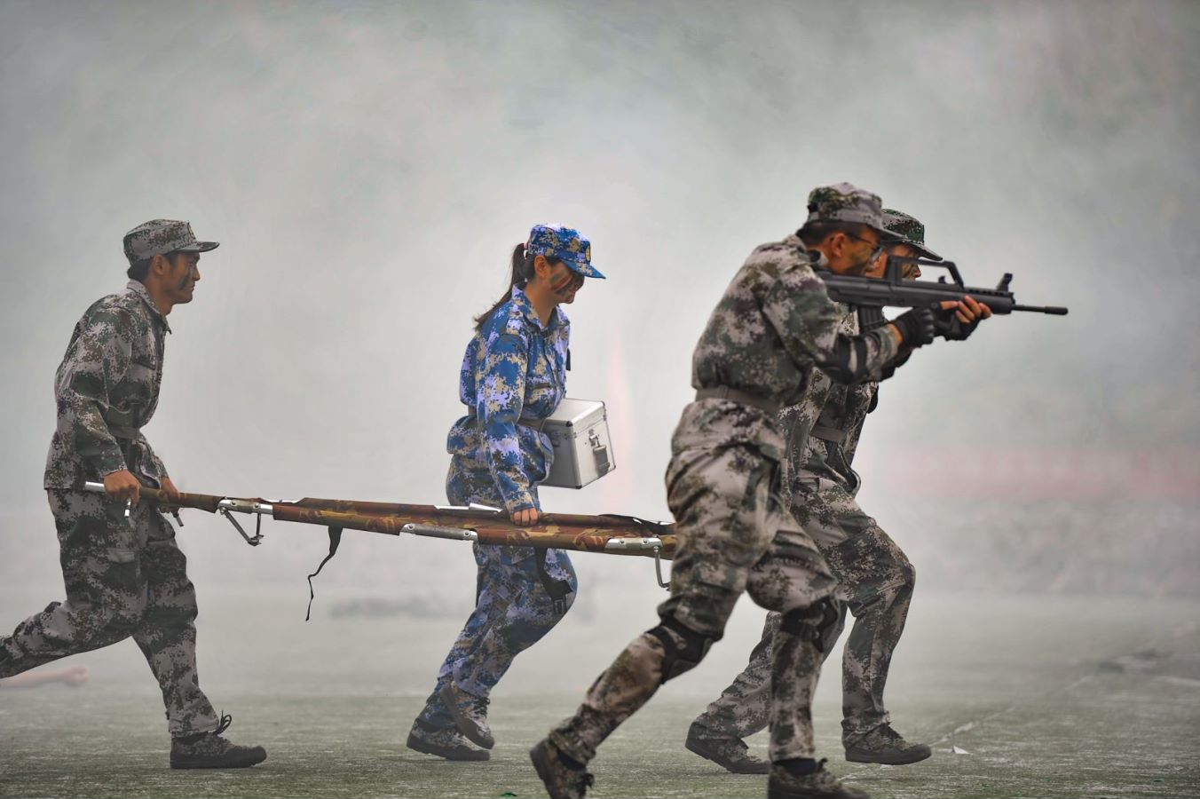 特种战术科目,演绎的是“英勇顽强 不怕牺牲”的战场交锋。参演人员按实战化要求,在战场配乐和烟雾的映衬下,协同组合步兵班、医疗组、反恐作战队,以规范的战术动作、有序的组织协调开展短兵相接,模拟敌情侦察、火力支援、综合保障的战斗情景,展现了参训学生英勇果敢的战斗素养。