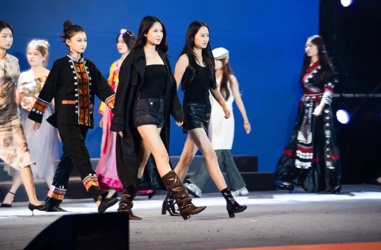艺术设计学院服装表演专业的同学们和学校礼仪队的同学们共同穿上了学校服装设计专业同学们设计的时装,带来了一场精彩的走秀表演,展现了学校“服装与服饰设计专业”作为天津市一流学科的办学特色和学生们的专业自信。