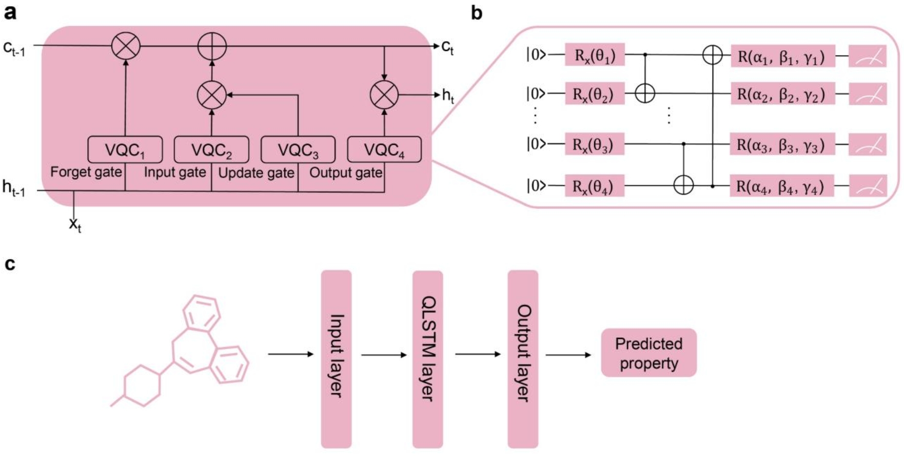 图2:QLSTM模型完整架构--从量子门操作到药物分子性质预测