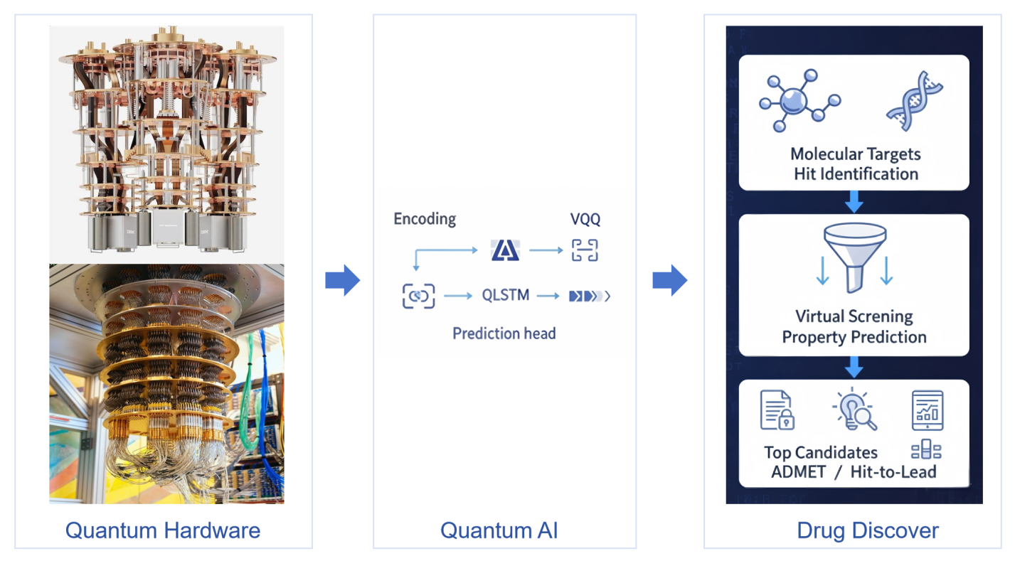 图1:量子硬件驱动的量子AI赋能药物发现总体框架示意图