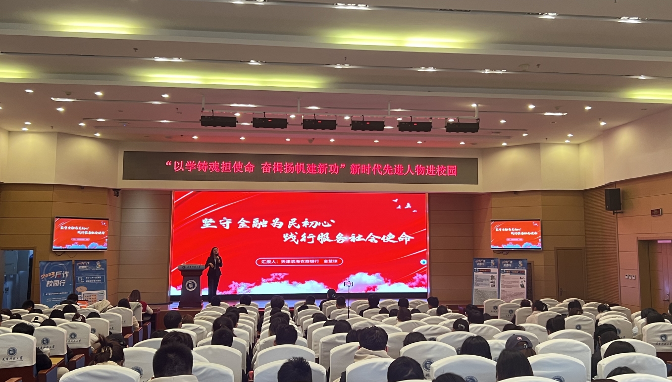 为深入贯彻落实党的二十大精神,深入开展学习贯彻习近平新时代中国特色社会主义思想主题教育,进一步深化对党的历史和发展规律的认识,增强对党的事业的自信与热爱,11月6日,我校在滨海中校区逸夫楼报告厅开展“以学铸魂担使命,奋楫扬帆建新功”大中小学新时代先进人物进校园活动,化工与材料学院承办。本次宣讲邀请到了党的二十大代表、天津青年五四奖章获得者、天津滨海农商银行营城支行大堂经理金慧琼担任主讲,各学院学生代表参会约200人。
