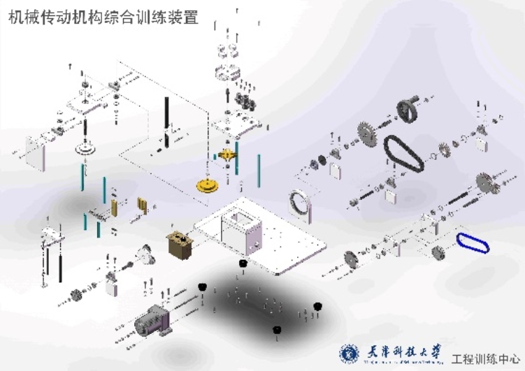 本次比赛的作品——机械传动机构综合教学训练装置是一种由多种机械传动机构组合而成并能够实现联动运行的综合教学训练装置,各种传动机构结合巧妙,有利于学生系统性地掌握各种机械传动的形式。同时也可为传统的以金工实习为主的工程训练课程添加更多的工程能力训练元素。
