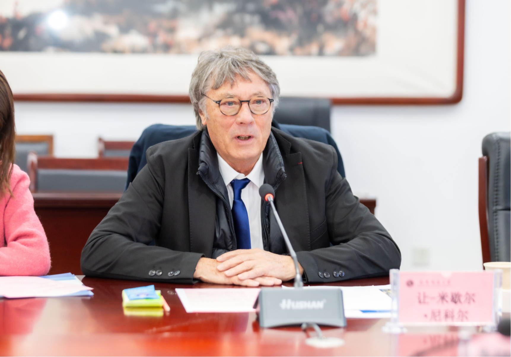 Jean-Michel NICOLLE对天津科技大学的热情接待表示诚挚感谢,并介绍了拉罗谢尔工程师学院的整体情况。他高度评价了天津科技大学的学科实力和国际化办学成效,并希望以此次交流为契机,建立长期、稳定、互惠的战略伙伴关系,通过多元化合作模式实现优势互补、共同发展。