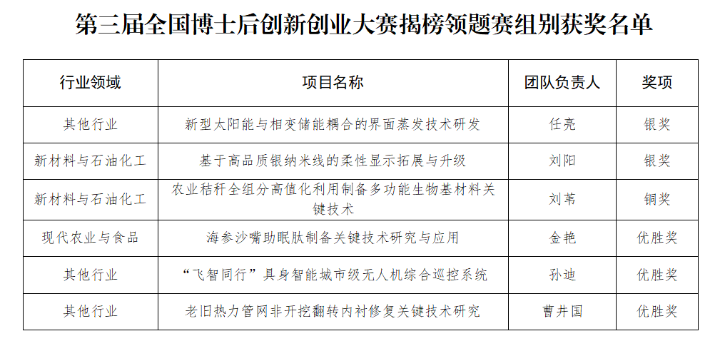 近日,天津科技大学博士后工作接连传来喜讯:在第三届全国博士后创新创业大赛揭榜领题赛中,学校2个参赛团队斩获银奖,1个团队荣膺铜奖,3个团队获得优胜奖;国家自然科学基金与中国博士后科学基金资助名单相继公布,我校5名博士后获批国家自然科学基金青年科学基金项目,1名博士后获选国家资助博士后研究人员计划(C档),4名博士后获批中国博士后科学基金面上资助,1名博士后获批中国博士后基金特别资助,1名博士后获批中国博士后基金会与天津联合资助(特别资助),彰显了学校在博士后队伍建设中的扎实成效。