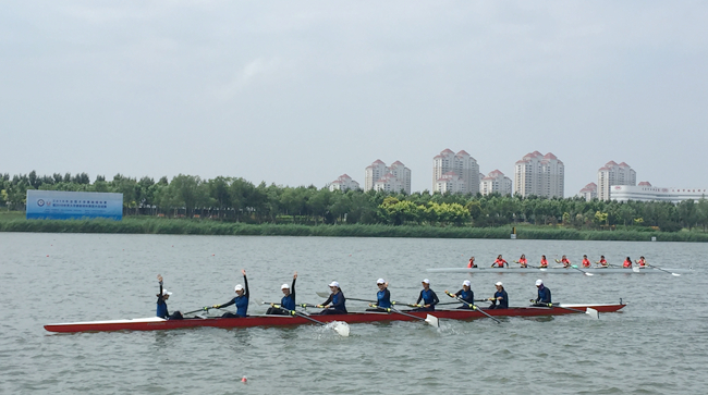 为备战此次全国大学生赛艇锦标赛,天津科技大学赛的队员们克服日晒酷暑,每天二十公里的水上里程和岸上的高强度技术训练,历经无数个挥汗如雨的艰苦训练。比赛中,面对第四军医大学,西安交通大学,天津师范大学,华北水利水电大学,西安电子科技大学,集美大学,聊城大学等国内顶尖高校赛艇强队,克服决赛中阴雨天气风大浪大的客观条件,我校赛艇队员们忍着伤病伤痛,用强劲的实力、坚强意志和团结精神力克劲敌、夺得胜利。