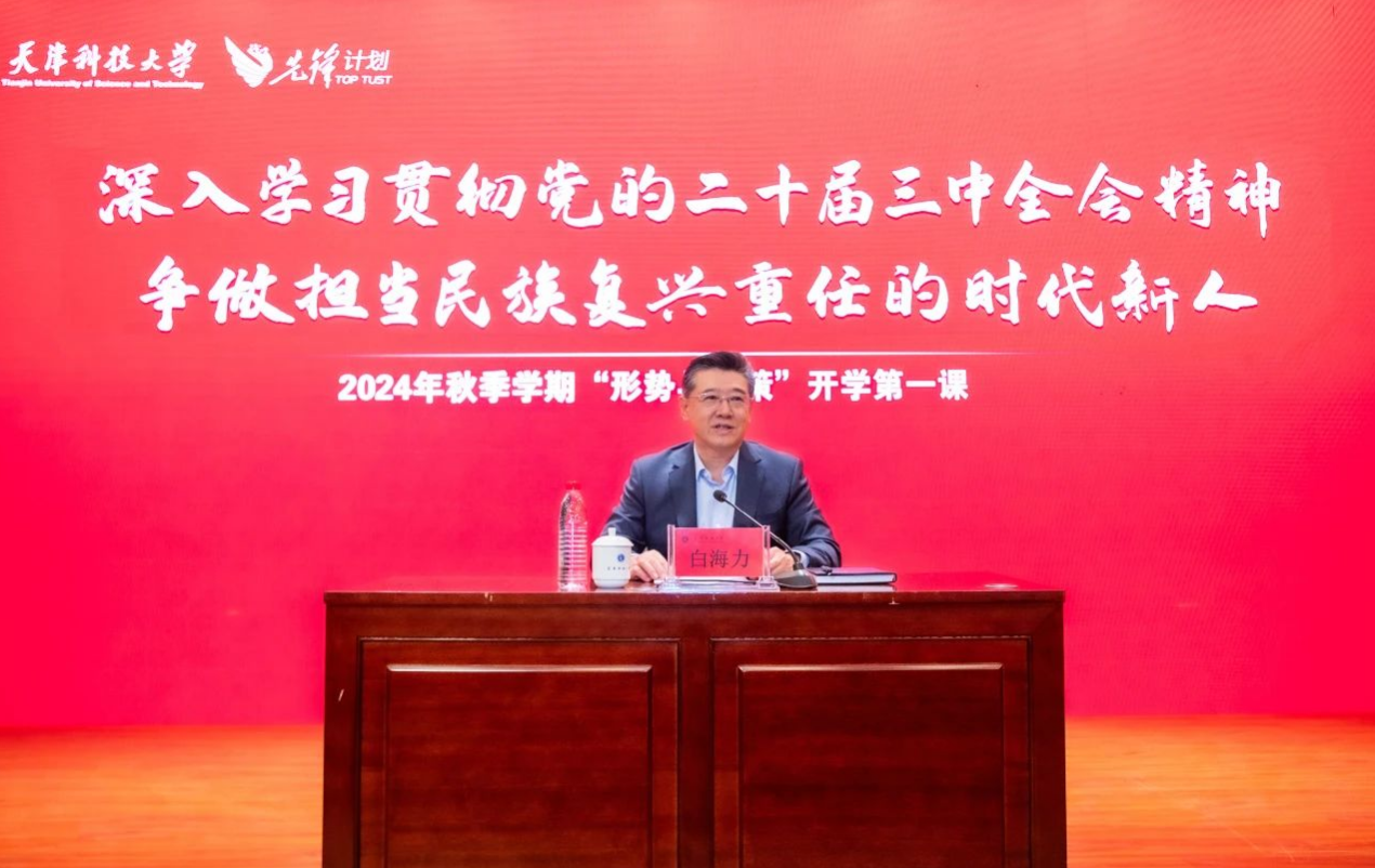 白海力带领大家一起深入学习、探析了党的二十届三中全会精神的精髓和要义;分享了我校全面贯彻落实全会精神,全力推进实施“先锋计划”的改革举措;和青年大学生交流了如何在推进强国建设、民族复兴伟业中展现青春作为、彰显青春风采、贡献青春力量。