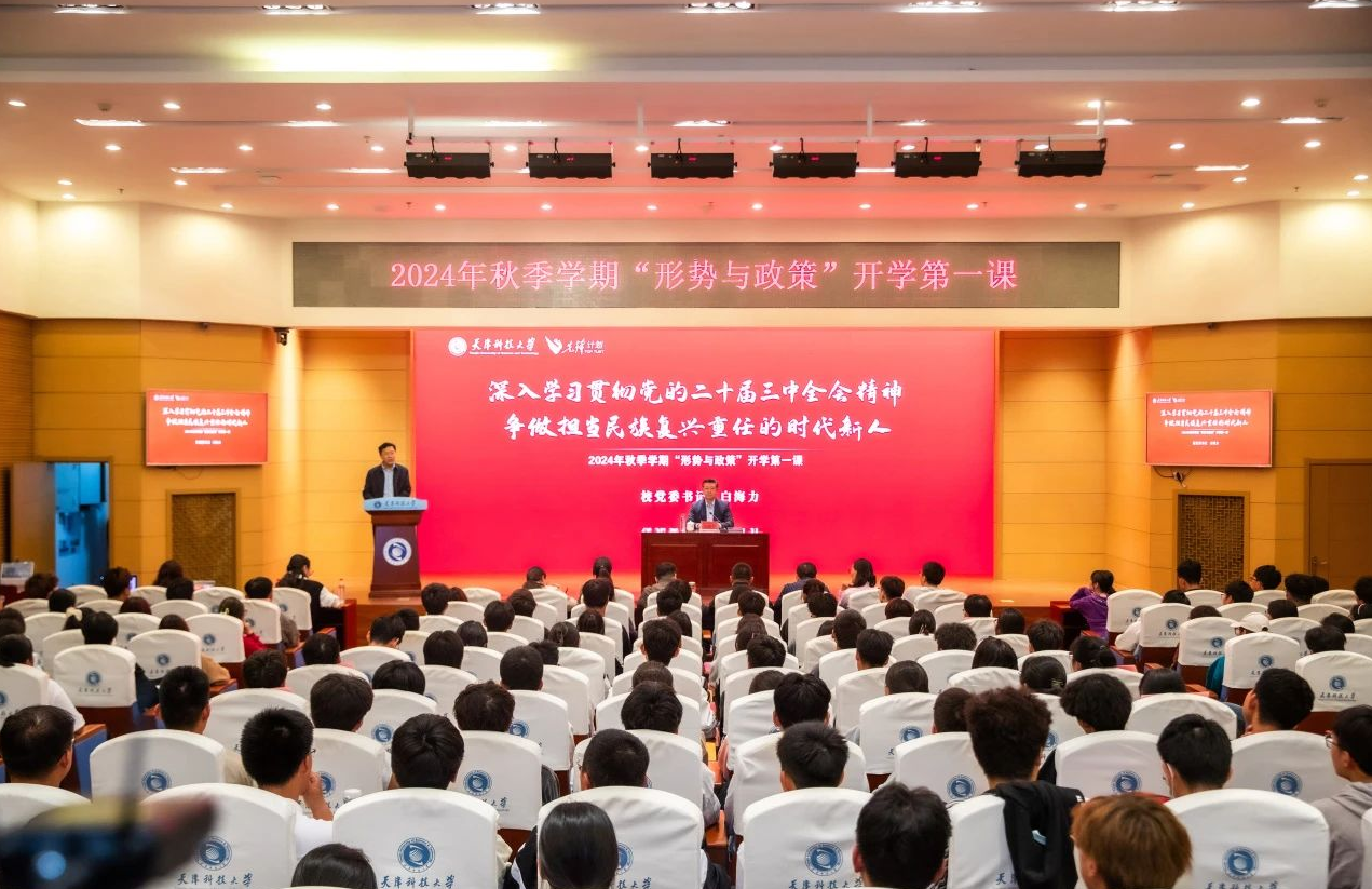 为深入学习宣传贯彻党的二十届三中全会精神和全国教育大会精神,深入推进落实我校“先锋计划”,10月17日下午,我校在滨海校区逸夫楼报告厅开展了秋季学期形势与政策教育“开学第一课”。校党委书记白海力以《深入学习贯彻党的二十届三中全会精神,争做担当民族复兴重任的时代新人》为题,为学校师生上了生动的一课。各学院学生工作干部、学生代表300余人参会。党委宣传部负责同志主持会议。