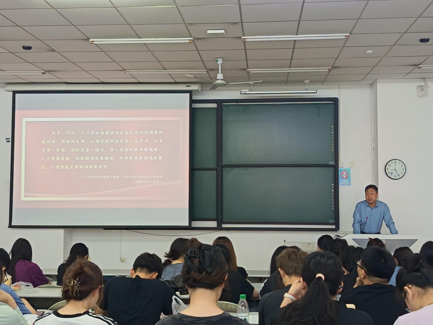 随后,高发明结合学校教改工作,引出“为什么要建设教育强国”这一重要问题,强调教育是国家富强的基础性工程。谈及“为什么要建设科技强国”,他结合人工智能学院的发展,强调科技创新在推动社会进步、提升国家竞争力中的关键作用。讲到“为什么要推进人才强国战略”时,他用鲜活的案例生动地展现了人才对国家发展的重要性。