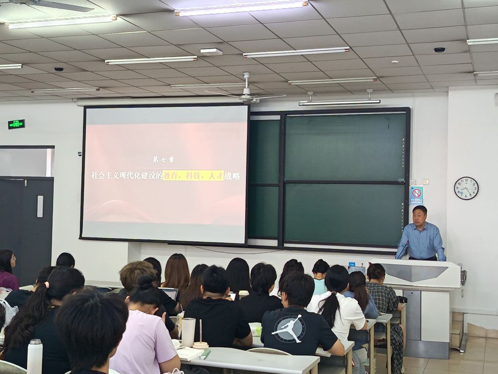 近日,天津科技大学副校长高发明走进经济与管理学院2023级学生课堂,以《社会主义现代化建设的教育、科技、人才战略》为题,为同学们带来了一堂别开生面的思政课。