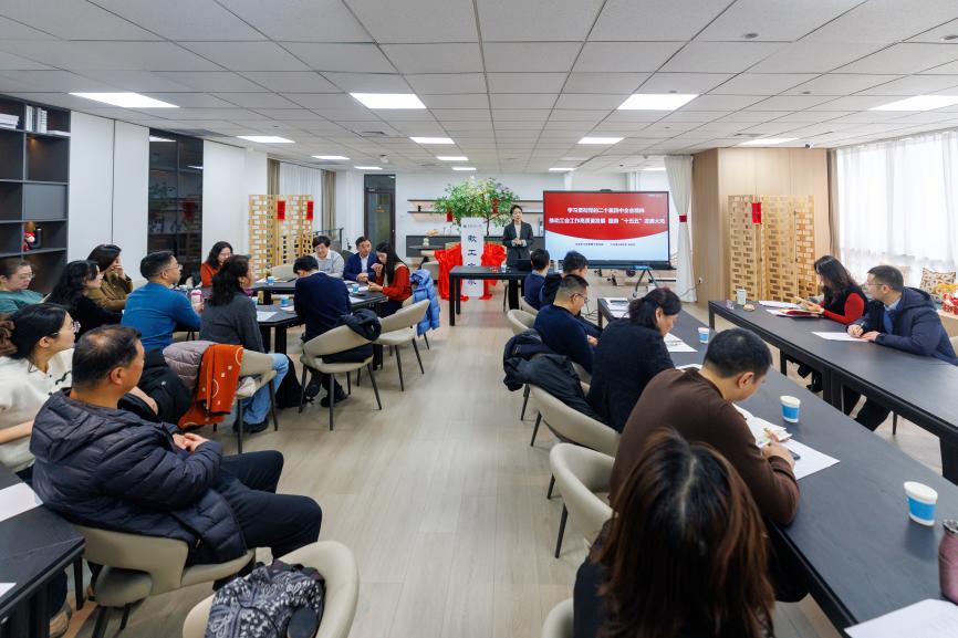 为进一步完善我校教职工服务体系建设,增强工会组织的凝聚力和服务力,提升工会干部理论素养与业务能力,在“教工之家”启用仪式结束后,天津市工会管理干部学院房莹莹以“学习贯彻党的二十届四中全会精神推动工会工作高质量发展 服务‘十五五’发展大局”为题,面向与会工会干部作了专题培训。