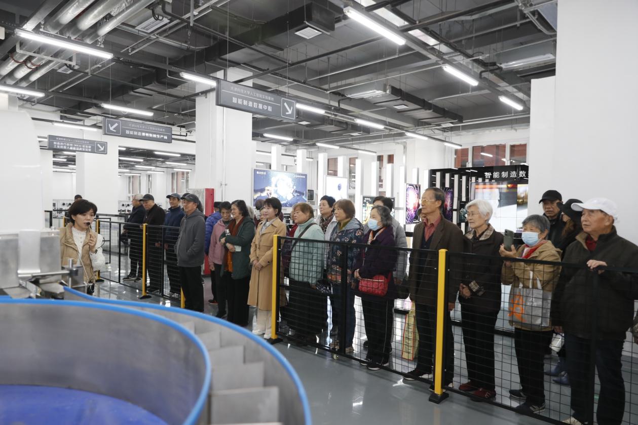 参观滨海办学二十年成果展前,离退处还组织老同志们参观了滨海西院人工智能实践基地。人工智能实践基地负责人向老同志们详细介绍了人工智能领域的最新科研成果及AI技术在生产物流领域的广泛应用,并带领大家参观了人工智能实践基地先进的设备设施。在光影交错的氛围中,老同志们感叹着科技发展的迅速,感叹着人工智能科技之光给社会带来的变化和影响。