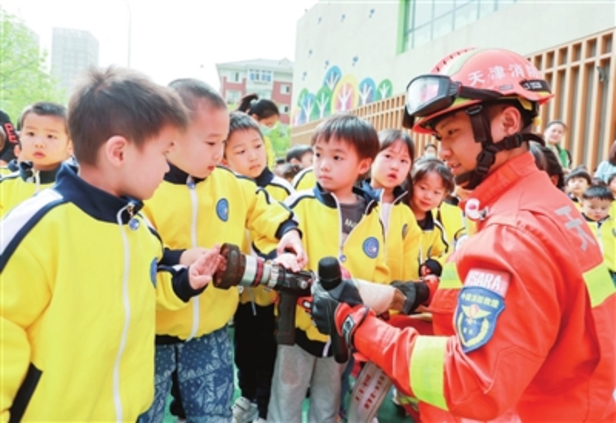 河西区第二十六幼儿园联合河西区消防救援支队开展主题安全教育活动,并通过现场互动体验,让孩子们在快乐中了解消防知识,树立安全意识。 本报记者 吴迪 摄