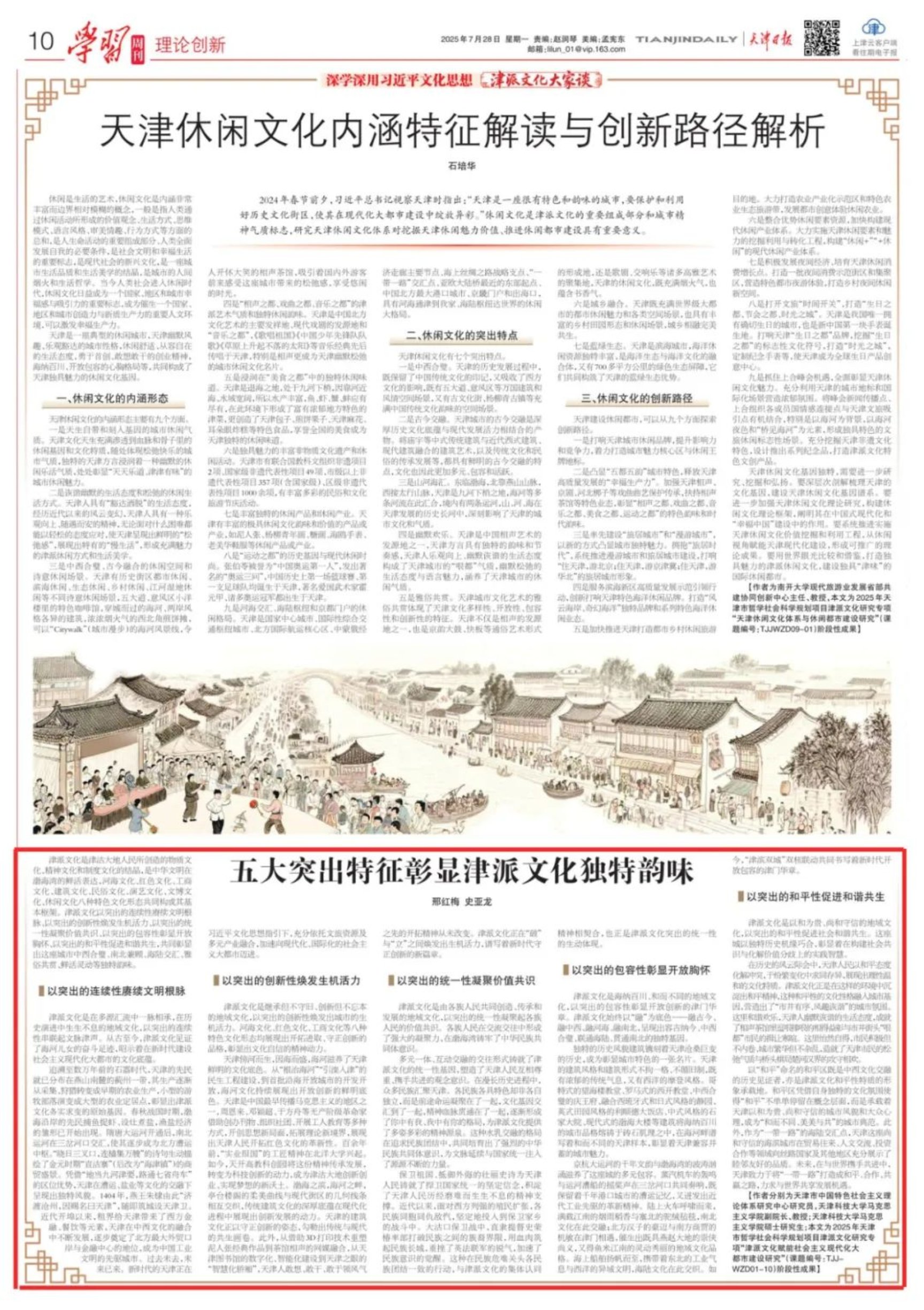 近日,《天津日报》刊发我校马克思主义学院副院长邢红梅理论文章《五大突出特征彰显津派文化独特韵味》,全文如下: