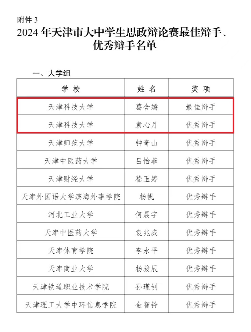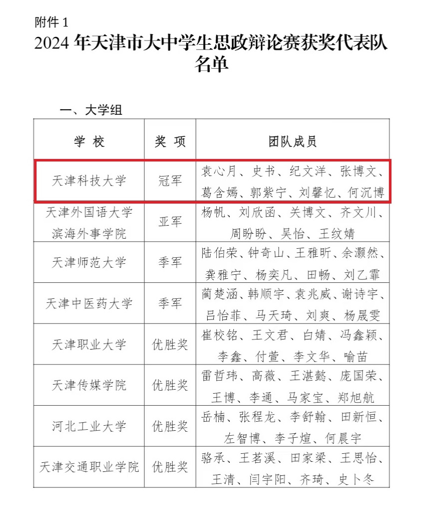 近日,天津市委教育工委、市教委公布了2024年天津市大中学生思政辩论赛获奖名单,我校辩论队喜获冠军!