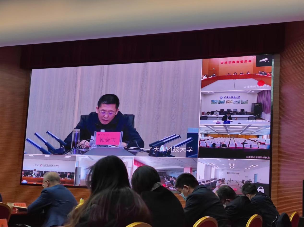 为贯彻落实2023 届全国普通高校毕业生就业创业工作网络视频会议及市委、市政府主要领导批示指示精神和2023 届全国普通高校毕业生就业创业工作网络视频会议精神,扎实推动2023届高校毕业生就业工作,3月1日上午,天津市召开2023届高校毕业生就业工作会议,我校党委书记韩金玉作交流发言。