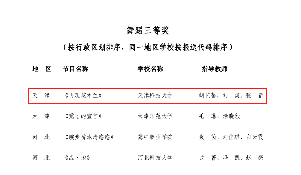 6月17日,全国第七届大学生艺术展演活动在湖北襄阳闭幕。本届大学生艺术展演活动由教育部和湖北省人民政府共同主办,以“厚植家国情怀涵养进取品格”为主题。我校荣获全国第七届大学生艺术展演优秀组织奖,舞蹈作品《再现花木兰》喜获全国三等奖。