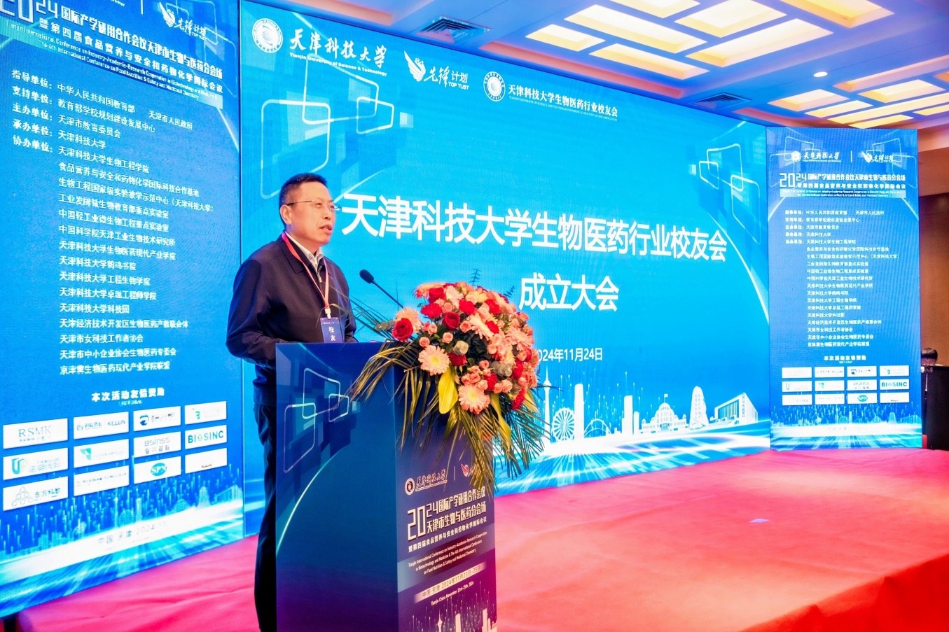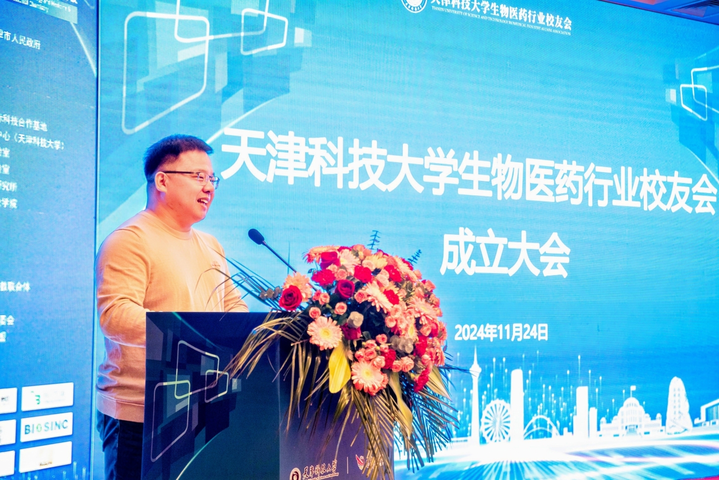路福平对参加生物医药行业校友会成立大会的校友表示热烈欢迎,对生物医药行业校友会的成立表示热烈祝贺。他指出,为全面贯彻落实党的二十大和二十届二中、三中全会精神及全国教育大会精神,学校正在全面推进落实“先锋计划”,积极构建“先锋生态”,进一步推进教育科技人才一体化发展,深化校企产学研合作、人才培养,提升学校服务社会能力。他提到,学校入驻滨海新区20年来,坚持扎根滨海、服务滨海,将优势学科与重点产业链紧密结合,各项事业发展取得新成效、实现新突破,特别是科技园建设卓有成效,吸引了一大批科技高水平企业进驻,与学校建设发展同频共振,进一步提升了学校学术声誉。他表示,在生物医药领域国际会议召开之际,大家共同见证生物医药行业校友会的成立,意义非凡。希望生物医药行业校友会在服务社会、服务校友上做好谋划,努力打造校友资源共享平台,齐心协力助推学校、校友事业蓬勃发展,实现双赢。