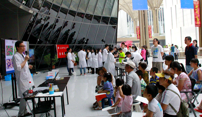在“奇妙的微生物”活动现场,生物工程学院应用微生物教工党支部书记刘逸寒教授带领大家开展“科学小讲堂”活动,通过多媒体展示,惟妙惟肖地为讲授微生物的趣味知识。生物学院大学生学术交流研讨会团队的同学们组织小朋友们观看酵母、霉菌试管与显微镜,帮助家长们和小朋友们对微生物进行宏观、微观体验,了解生物万花筒的奥秘,并开展“我来讲讲微生物”互动游戏等。