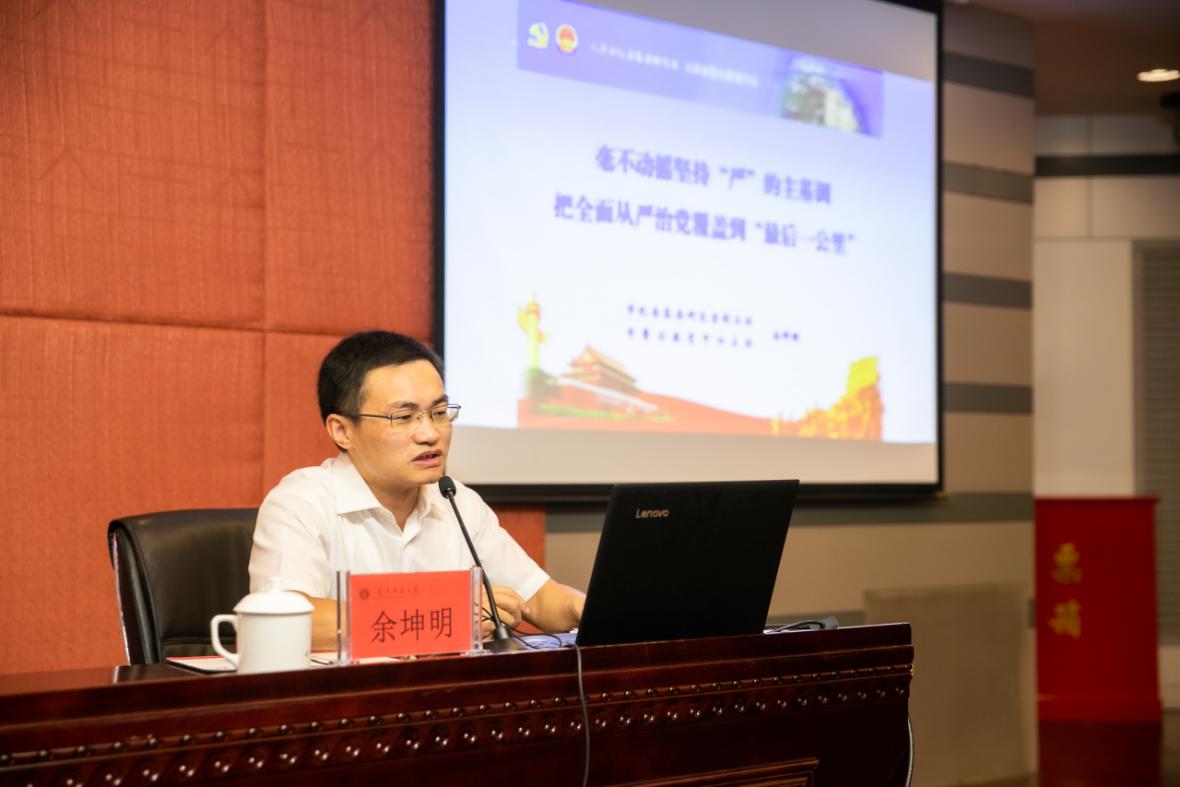 天津市纪委监委研究室副主任、市警示教育中心主任余坤明作了警示教育辅导报告,以大量真实案例“以案说法、议案释纪、以案施教”,帮助党员干部厘清违法的边界,真正把对法治的尊崇和敬畏转化成思维方式和行为方式,具有很强的针对性和说服力。