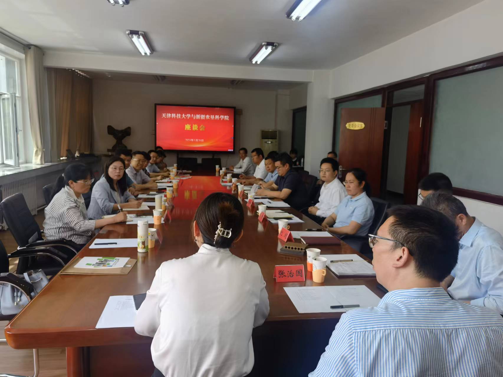 路福平首先对农垦科学院的盛情邀请表示感谢,并围绕学校师资队伍、学科建设、科技创新和成果转化、人才培养等方面做了总体介绍。路福平指出,新疆农垦科学院建院75年以来,在育种、农机设备研发等方面为国家和新疆农业生产及经济建设做出了重要贡献。希望双方能在科技创新、人才培养和服务经济社会发展等方面开展深入合作,为津新两地和西部地区产业高质量发展注入新的活力。会上,路福平校长代表学校慰问了我校在新疆农垦科学院的挂职干部。
