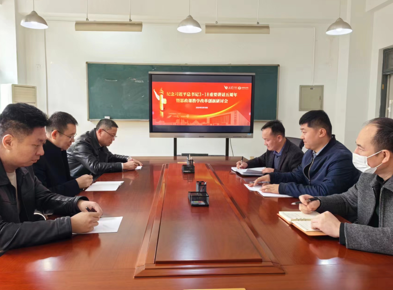 3月18日,马克思主义学院召开纪念习近平总书记“3.18”重要讲话发表五周年暨思政课教学改革创新研讨会,学院领导班子成员,教研部负责人、课程负责人,骨干教师代表参加研讨会。与会同志汇报了各教研部学习研讨和集体备课的情况,畅谈了重温习近平总书记“3·18”重要讲话精神的体会和贯彻落实习近平总书记重要讲话精神的经验做法,并就如何加强思政课改革创新,推进思政课高质量发展发表了意见建议。