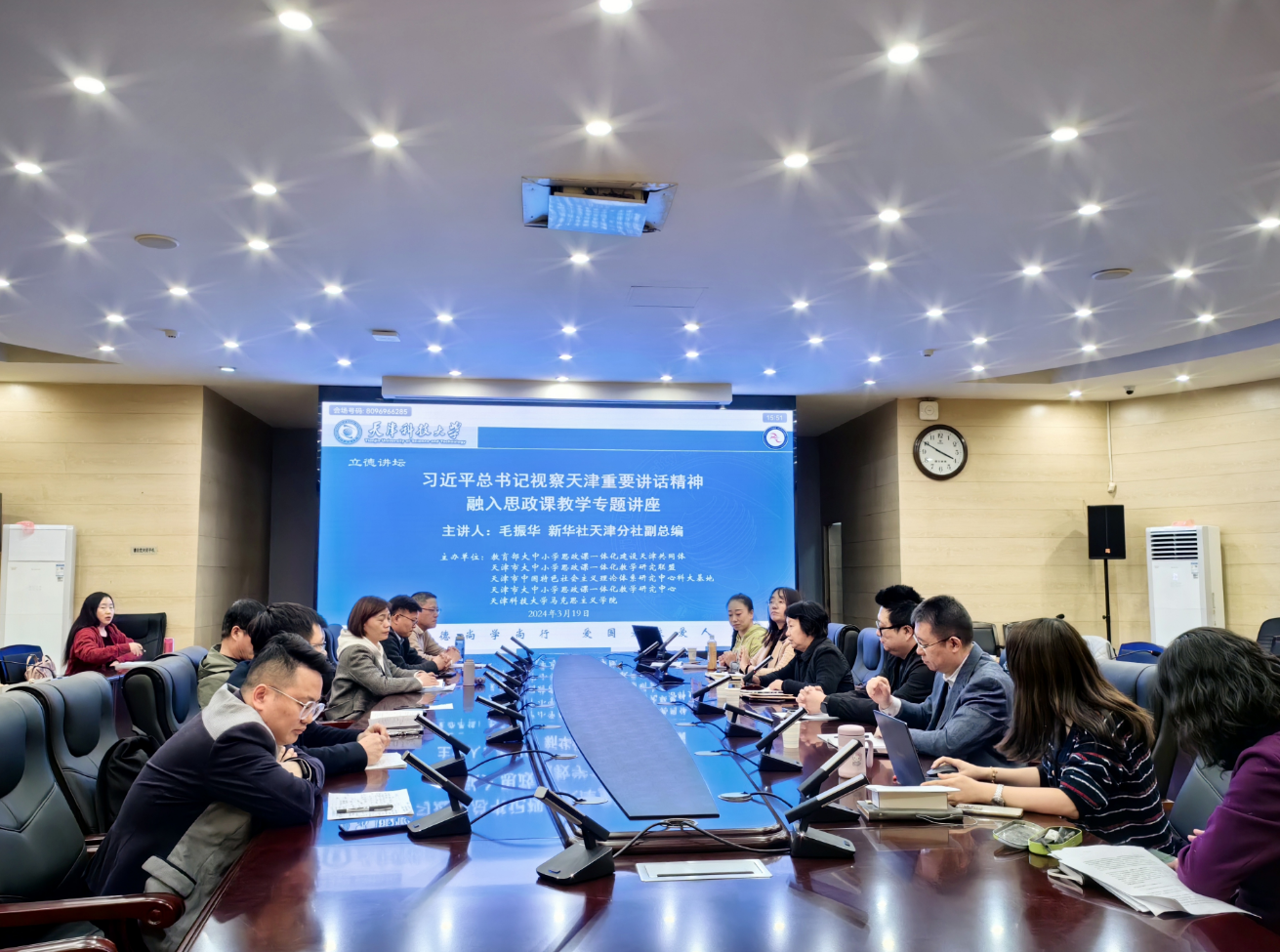 3月19日,学校召开纪念习近平总书记在学校思想政治理论课教师座谈会上发表重要讲话五周年,深入学习宣传贯彻习近平总书记视察天津重要讲话精神专题讲座,邀请新华社高级记者、天津分社副总编毛振华作专题辅导。马克思主义学院全体教师参加会议。毛振华结合大量鲜活、直观、生动、详实的案例、数据、视频,从传统文化传承、京津冀协同发展和发展新质生产力三方面对习近平总书记视察天津重要讲话精神进行了深入讲解,对于思政课教师深入学习领会习近平总书记重要讲话精神的精髓要义和实践要求,具有重要的启发和帮助作用。