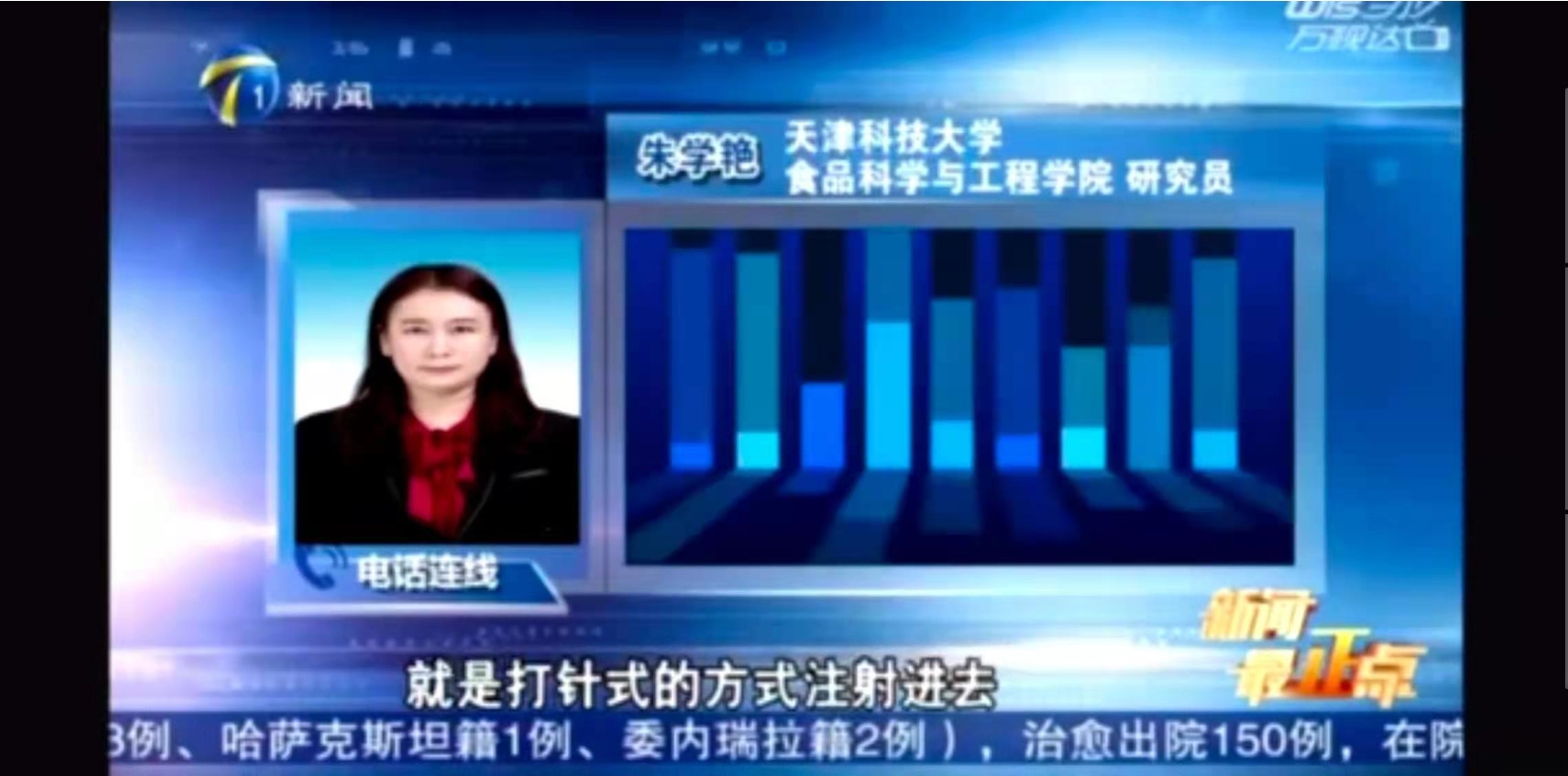近日,天津新闻频道《新闻最正点》节目中就注射甜蜜素是否可以使水果变甜采访我校食品学院研究员朱学艳。朱老师说:“从技术上来讲的话,不可能实现把甜蜜素打到水果里使水果变甜。很多人认为,可能通过针刺,就是打针的方式注射进去,但是基本上不可能。因为本身甜蜜素是溶于水的,把他打进水果里去,很难在水果中能分散均匀。进去分散之后很难不保证细胞壁和细胞膜本身的膨胀压就会改变,这样水果就特别容易腐烂变质。”
