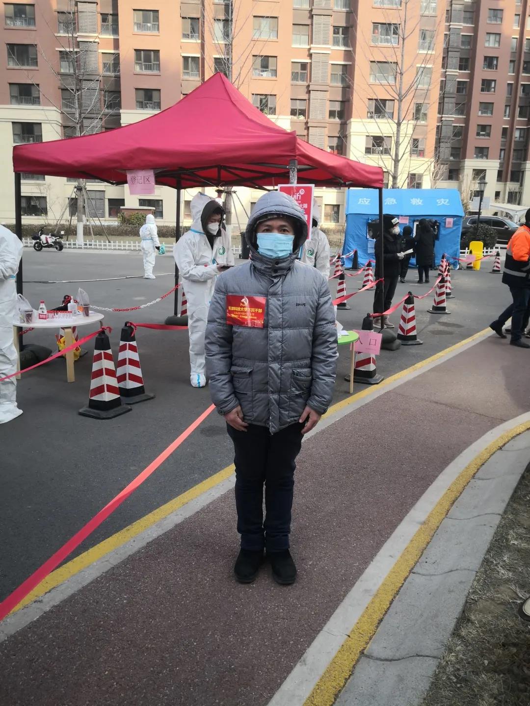 艺术设计学院副教授郭铁军在河西区陈塘庄街道四季馨园小区做志愿者,负责前期准备,维持秩序和信息采集工作。