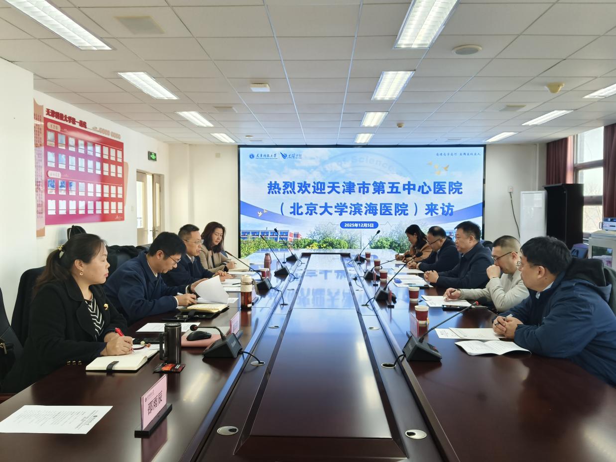 为深化医工交叉协同,赋能真实医疗场景实践,推动医疗健康领域人才培养改革,贯通科技创新成果转化路径,近日,天津市第五中心医院(北京大学滨海医院)党委书记、执行院长刘明勇一行到访天津科技大学。校党委副书记、校长路福平出席座谈,尚行学部负责同志及相关工作人员参加了交流。